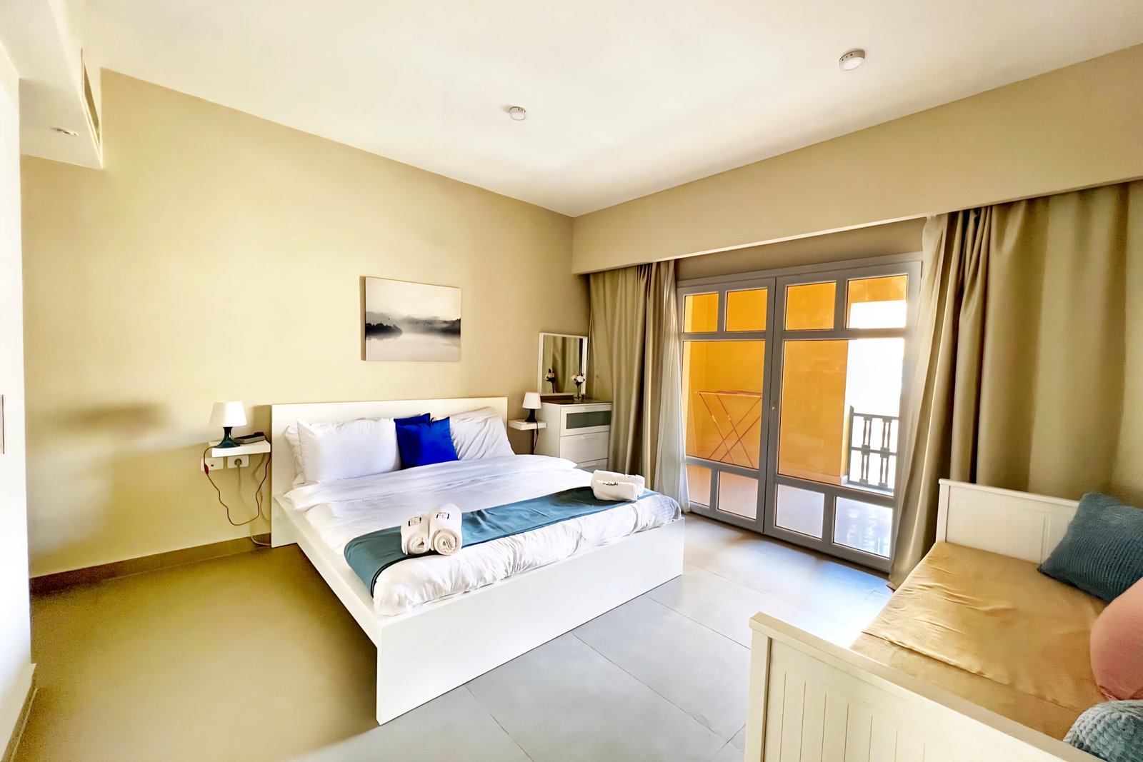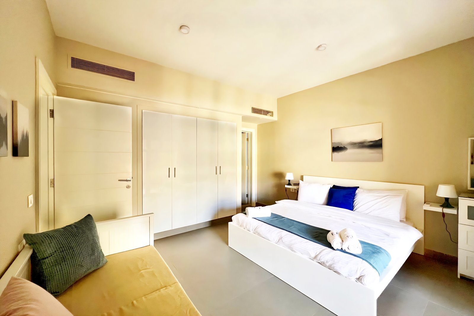 This neat 1 bedroom apartment is located in Gouna’s Abu Tig Marina. The apartment is on the third floor and features an open plan fully equipped kitchen, 1bathroom and a living room with a sofa bed at the bedroom that can sleep up to 2 additional guests. It also features a 55 inch smart TV with Airplay and cable channels, washing machine, a Nespresso machine, kettle and a microwave. The apartment is great for couples & small families. The apartment is very central, quiet and minimal, however it is fully equipped to comfortably accommodate guests. At Xuru Stays, we’re committed to Neighborhood: -Marina El Gouna is a central scene with lots of restaurants, bars and shops. -‘On Time’ supermarket is right in front of the residence towards the Marina. Transit: Free outdoor parking is available. Tuktuks are available to take you anywhere in El Gouna.