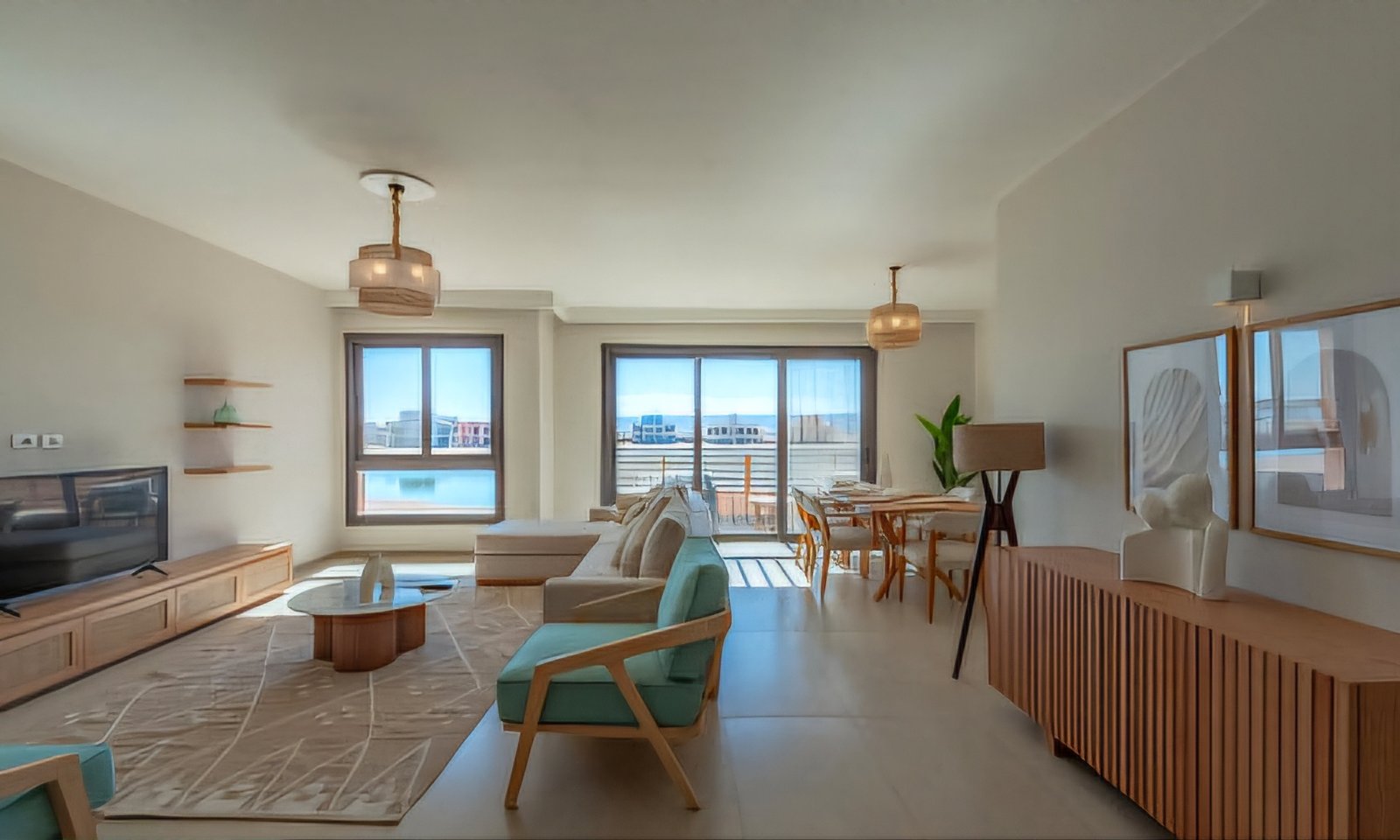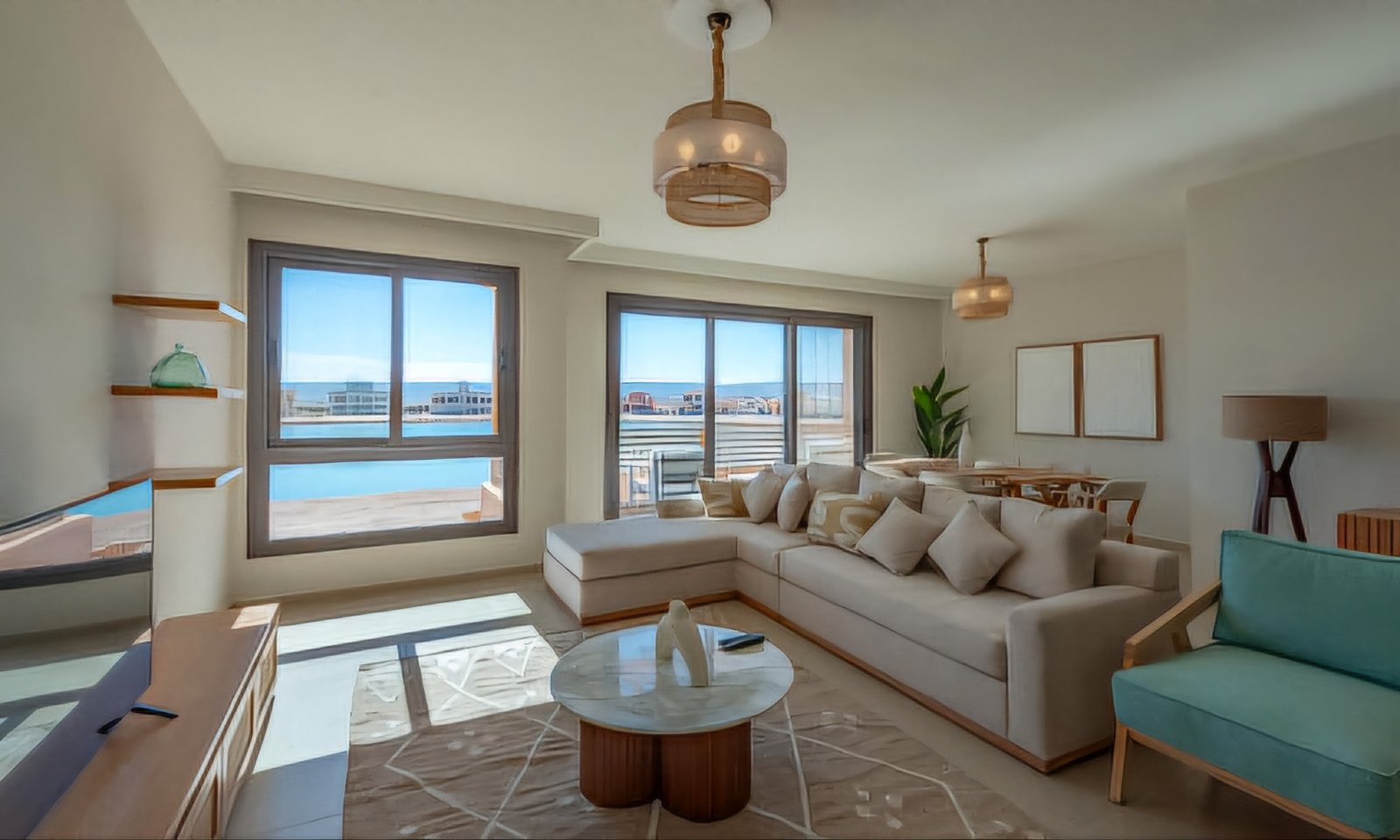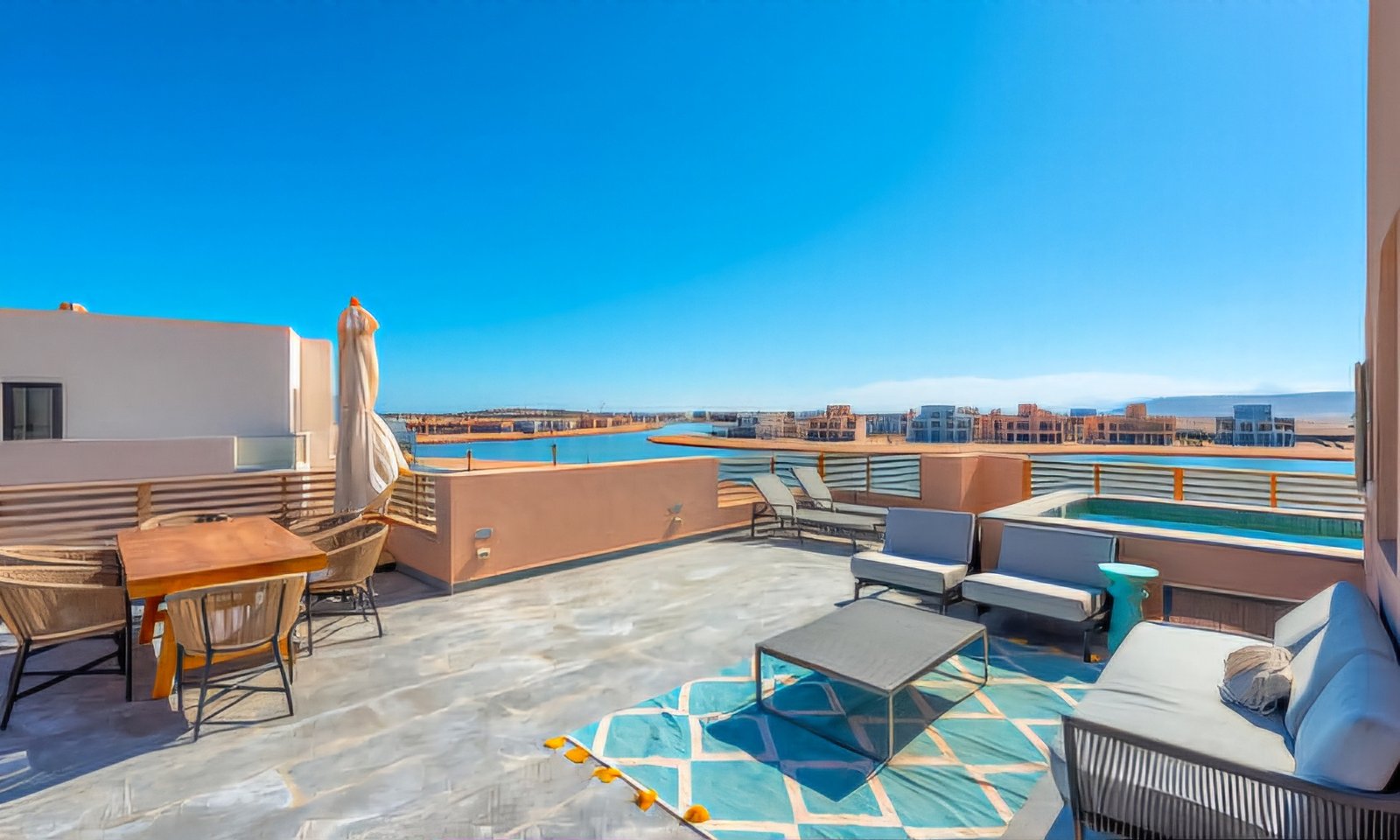 Stunning Lagoon-View Apartment with Private Rooftop Pool & Chic Interiors. Discover the perfect blend of luxury and relaxation in this elegant apartment in El Gouna. ▶ Prime Location: Ancient Hill, El Gouna ▶ 3 Bedrooms | 2.5 Bathrooms | Up to 6 Guests ▶Private Rooftop Pool + Lagoon Access Welcome to this exclusive 3-bedroom apartment in the heart of El Gouna’s Ancient Hill, where modern comfort meets serene waterfront living. With panoramic views of the Red Sea, the lagoon, and the surrounding mountains, this home offers an unforgettable escape. Sleeping Arrangements: ▶ Master Bedroom: Queen-size bed, ensuite bathroom & stunning views ▶ Bedroom 2: 2 single beds, ideal for kids or friends ▶ Bedroom 3: 2 single beds, bright & airy Bathrooms: ▶ 2 Full Bathrooms with showers ▶ 1 Guest Toilet Amenities & Features: ✔ Private rooftop terrace ✔ Private rooftop pool – your own secluded oasis with stunning views ✔ Spacious lagoon-front balcony – the perfect spot to relax with a drink or meal ✔ Modern, open-plan living area – bright, elegant, and perfect for socializing & dining ✔ Fully equipped kitchen – includes a fridge, freezer, oven, stove, microwave, dishwasher, and kettle ✔ 3 balconies – enjoy the fresh sea breeze & magnificent views from different angles ✔ Smart TV + free Wi-Fi – stay entertained and connected ✔ Air conditioning – stay cool and comfortable ✔ Washing machine & ironing facilities – for a hassle-free stay ✔ Independent entrance + free parking – private and secure Exclusive Access: ✔ Swimmable lagoon – step directly into the crystal-clear waters ✔ Prime location – close to El Gouna’s marina, restaurants, and activities