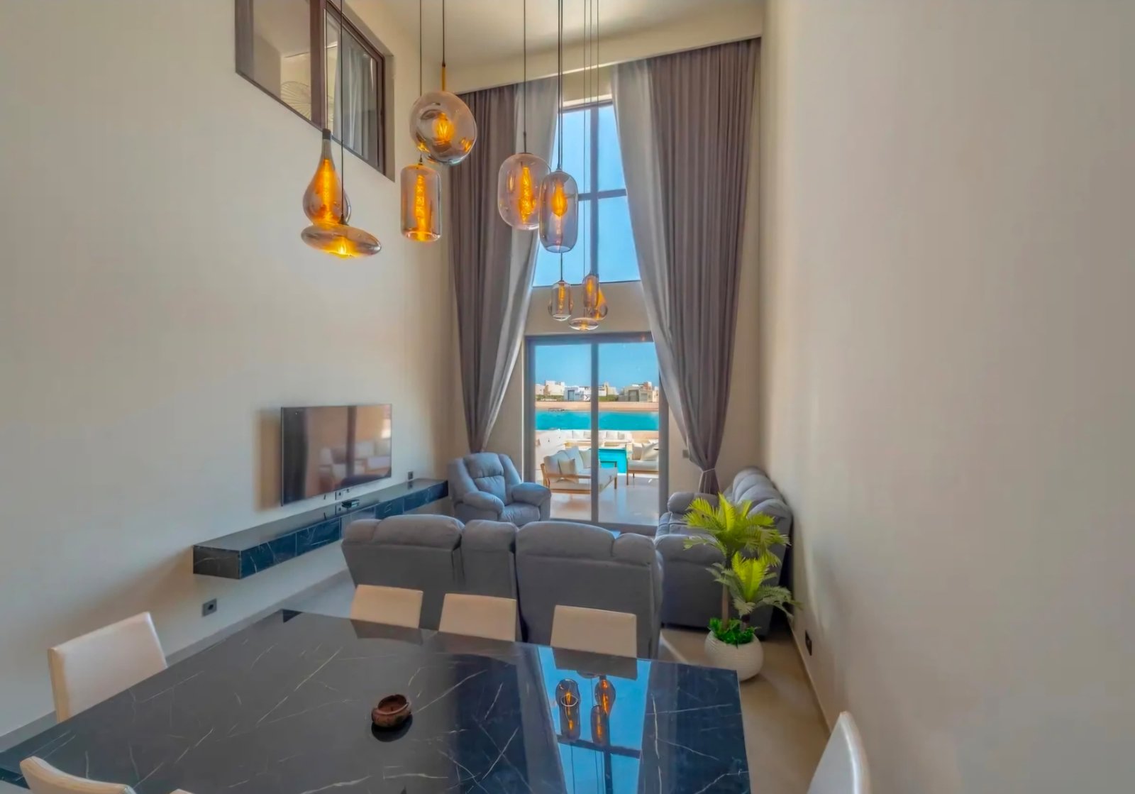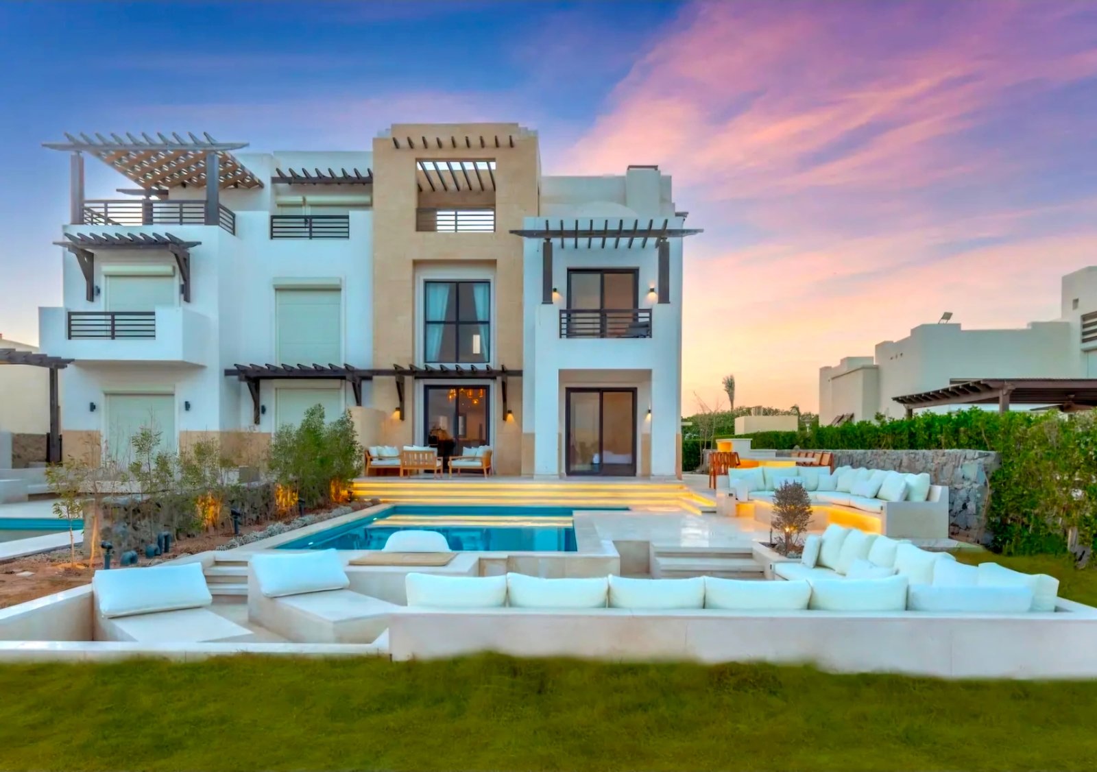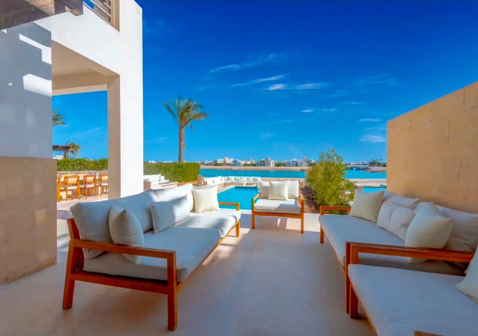 A comfortable and stylish 3-bedroom twin villa located in one of El Gouna’s newest developments: Ancient Sands Villas. This property offers serene lagoon views and a private patio with a swimming pool, ideal for a relaxing getaway. Prime Location: Ancient Sands Villas, El Gouna, Private Backyard, Private Heated Swimming Pool, Lagoon-front Balcony, Stunning Views, 3 bedroom, 3 Full Bathrooms with a shower, Guest toilet, Guest room with a bunk bad (suitable for 2), Washing Machine & Ironing Facilities, Air conditioning, Bright & elegant interior design, Fully fitted kitchen equipped with appliances like: oven, fridge & freezer, microwave, stove, kettle, Spacious, Open-plan Living Room, Dining Area, Smart TV, Free Wi-Fi, Swimmable lagoon access, Free parking on premises, Independent entrance 24h,
