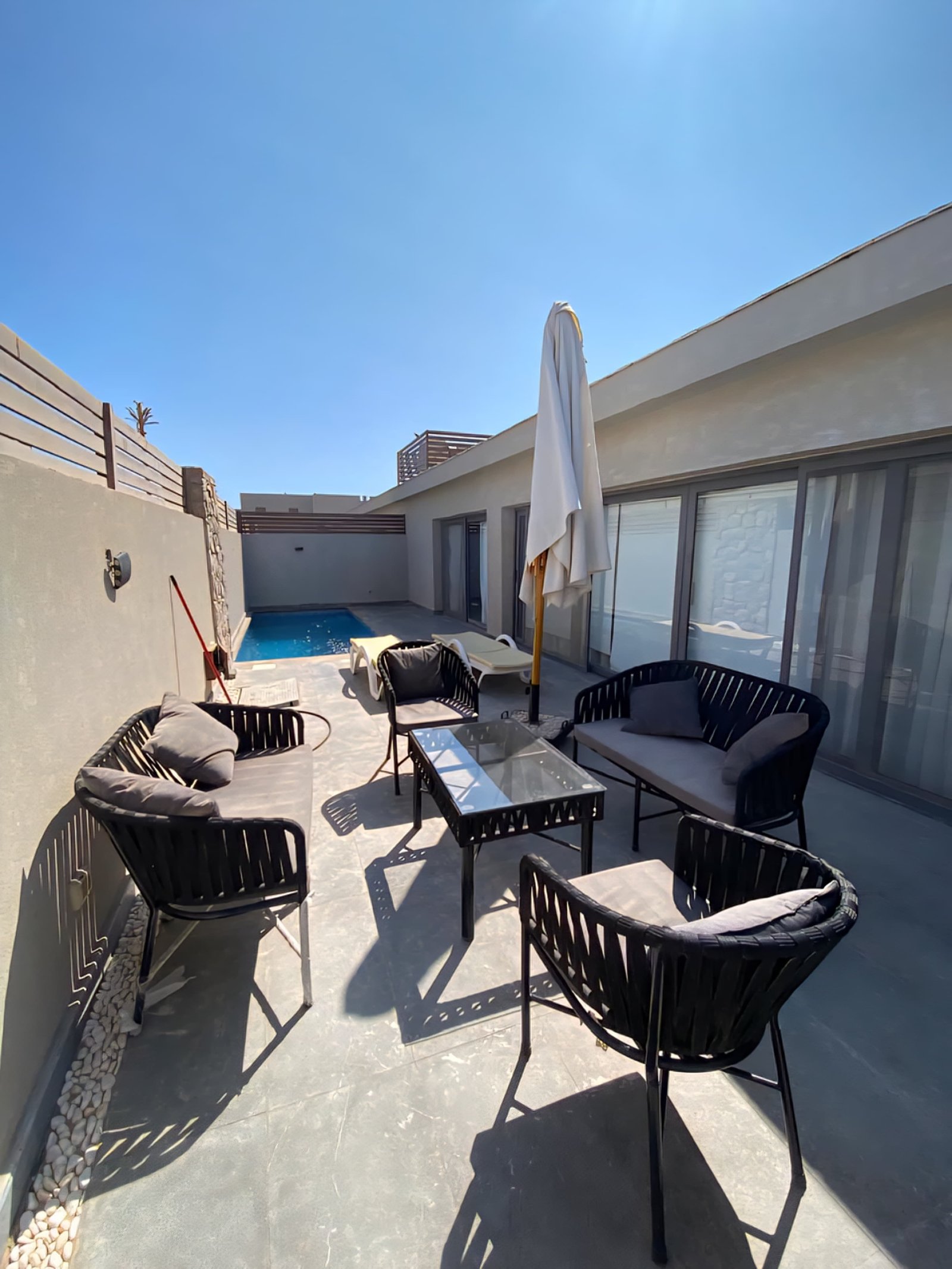 2 Spacious Bedroom, Well-Equipped Kitchen & Cozy Living Room, Private heated Pool, Wi-Fi Included , Fully Equipped Kitchen: Refrigerator, Microwave, Cooker, Kettle, Washing Machine , Entertainment: Smart TV (Shahid, Netflix), Home 4G Wi-Fi , Fully Furnished , Accommodates up to 6 People , Housekeeping available with extra fees