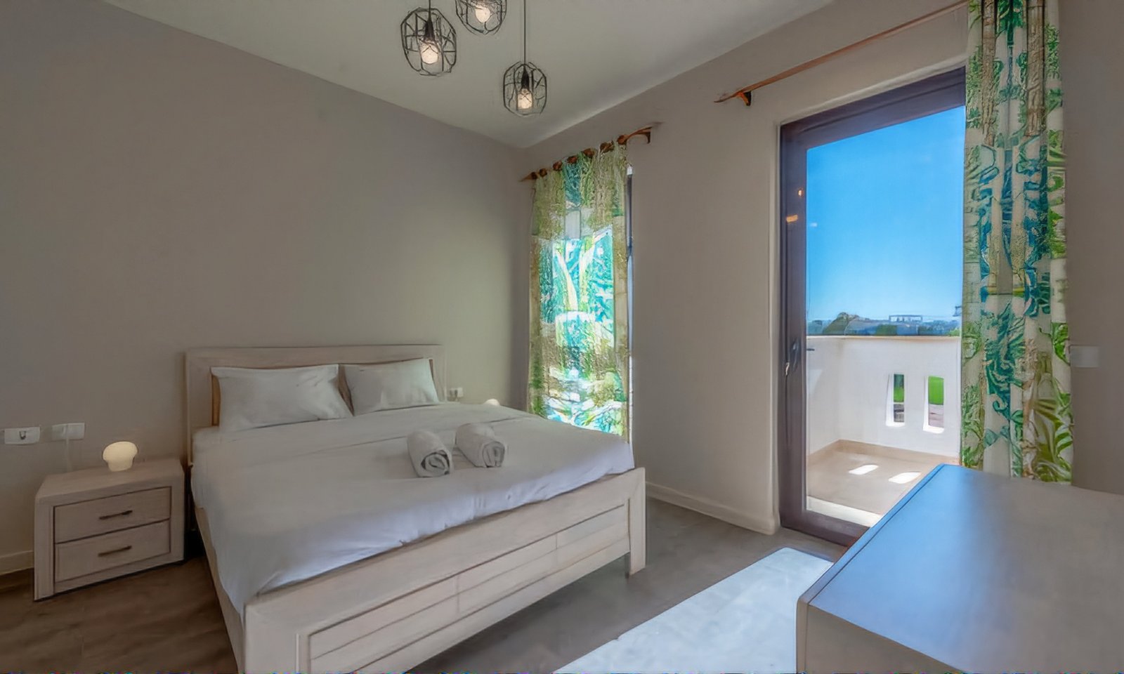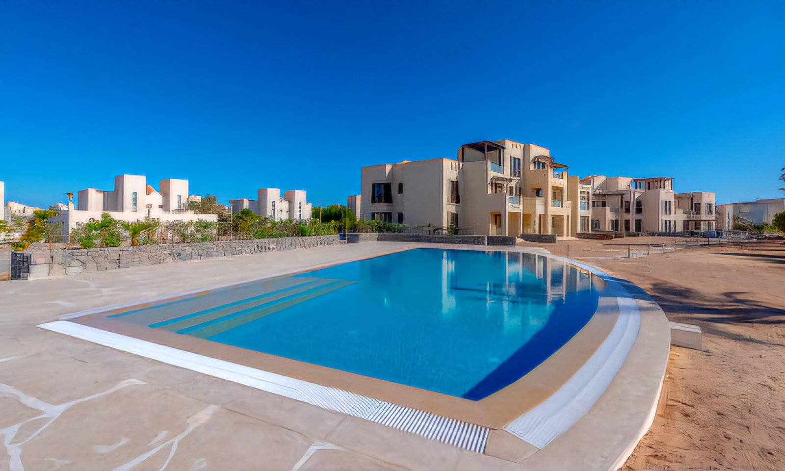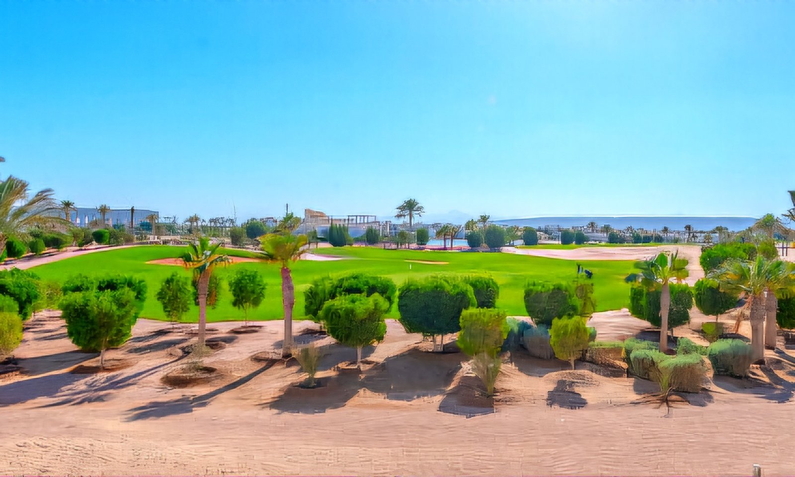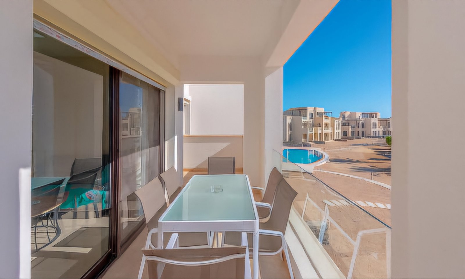 High-standard 2-Bedroom apartment in one of the latest Orascom Development projects in El Gouna – Cyan. A place where simplicity meets innovative solutions and beautiful finishings. Cyan is surrounded by the vibrant greens of 9-holes golf course, lakes and magnificent landscapes. The apartment is on the first floor and faces the golf course directly, you can admire views from the balcony. The outdoor dining area is enriched with a view-both on the golf course and the shared swimming pool. Indoor space features 2 master bedrooms, both ensuite, 1 double bed and 2 single beds in the other. Both bedrooms are equipped with AC and have their own access to the balcony. The living area is far away from any common overwhelming crowded interior, everything here is fresh, simple and ready to deliver top quality experiences. Open plan kitchen has an oven, a stove, microwave, fridge & freezer, kitchenware and washer. It’s enhanced by a bar with 3 high chairs. In the living room there is a big, flat screen smart TV situated in front of the comfortable L-shaped sofa. All property is Wi-Fi covered. Additionally, there is a guest toilet connected to the middle room for your convenience. Brand-new Cyan’s shared pool is for your use. Cyan is positioned minutes away from the Abu Tig Marina, home to El Gouna’s finest restaurants and bars. Downtown is just 2 minutes drive away. The Red Sea and closest kitesurfing centers are located less than 1.5km from the apartment.