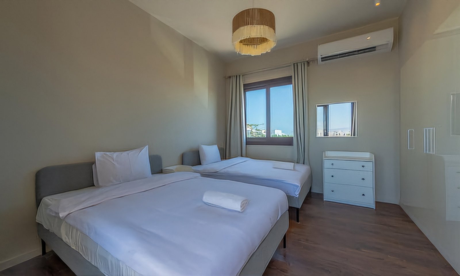 Cyan, El Gouna. Brand-new 3BR Townhouse Lagoon & Pool Enjoy a memorable Gouna vacation in this stylish and cozy house. This newly-built 3-Bedroom is located in one of the latest residential projects in the area – Cyan. Entire place easily accommodates 6 guests, so it’s perfect for a family or a small group of friends. Whole property is Wi-Fi covered. ▶ 3 Levels ▶ 3 Bedrooms (2 x queen size, 2 x wide single bed) ▶ 2 Bathrooms with shower + guest toilet ▶ Large open-plan living room ▶ Seating area by the TV ▶ Extra large TV ▶ Free Wi-Fi ▶ Kitchen with necessary utensils and appliances fridge & freezer, stove, oven, microwave, kettle ▶ Dining area ▶ Washing machine ▶ Balcony with a seating set ▶ Rooftop terrace relaxation zone with stunning views ▶ Swimming pool access ▶ Free parking While booking please note: Cyan 2 district is still under construction. Nearby construction and landscape work may cause daytime noise. We apologize for any inconvenience and hope you still enjoy your stay. Cyan is positioned minutes away from the Abu Tig Marina, home to El Gouna’s finest restaurants and bars. Downtown is just 2 minutes drive away. The Red Sea and closest kitesurfing centers are located less than 2km from the apartment. All top El Gouna attractions are accessible within minutes drive