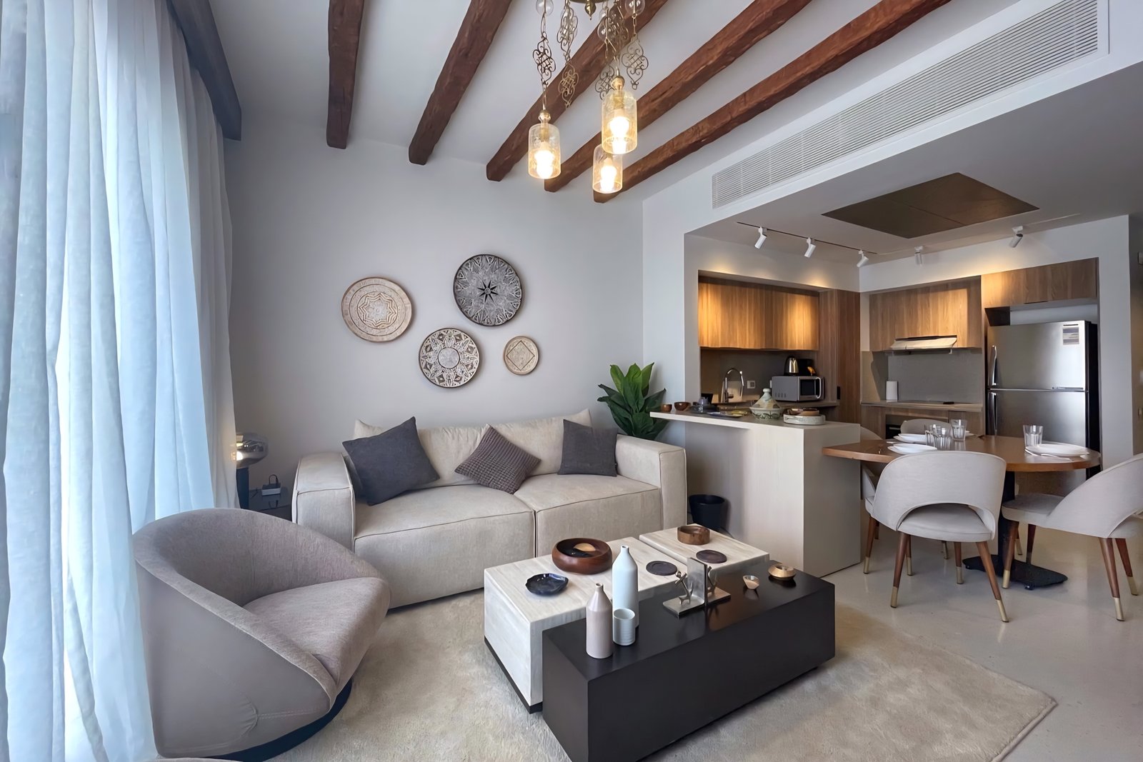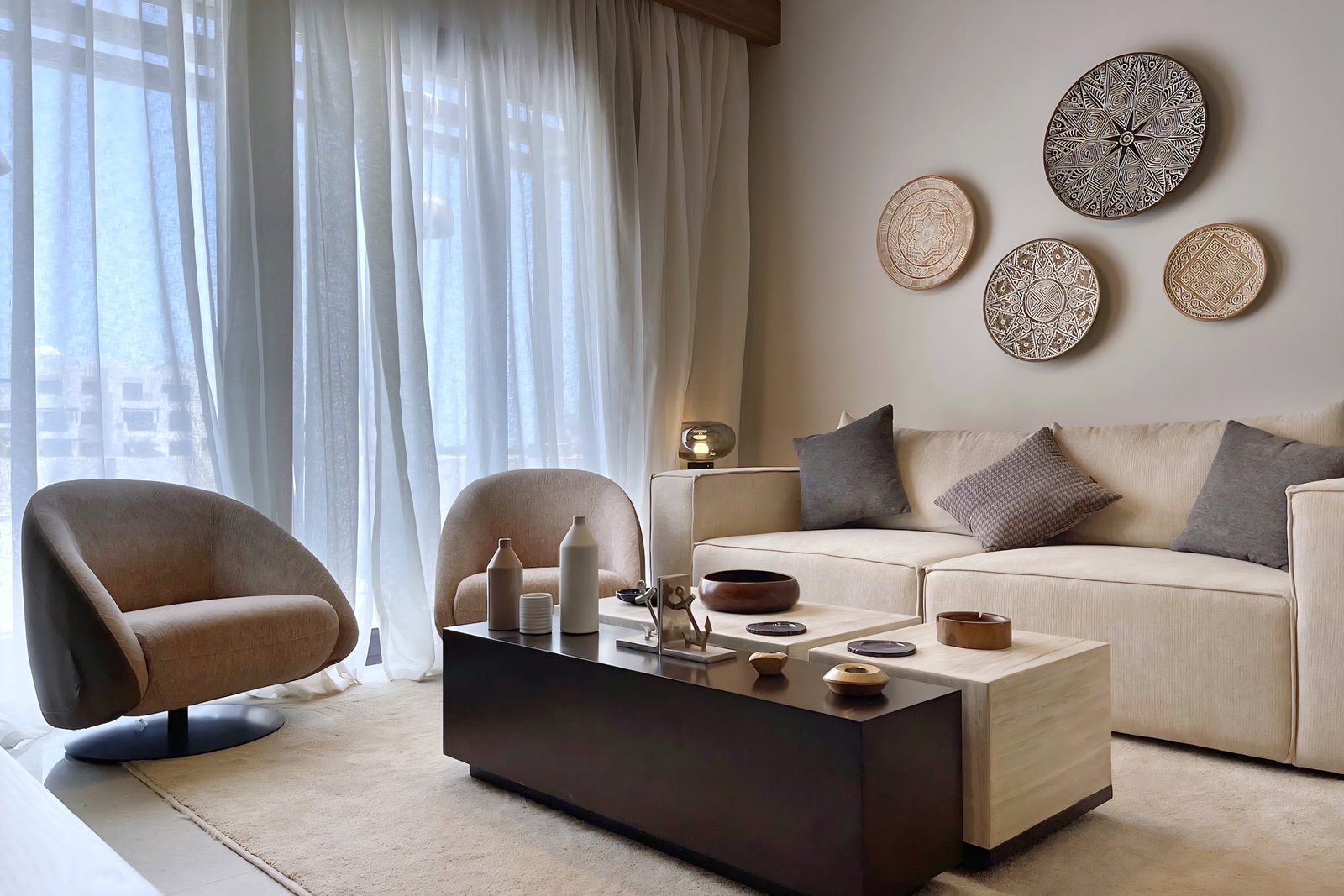 This 1 bedroom apartment is located in Fanadir Marina, five minutes away from Abo Tig Marina. The apartment is on the ground floor and features an open plan fully equipped kitchen, 2 bathrooms (one ensuite) and a living room. There is a bright and cozy outdoor terrace, perfect for your morning coffee or late night relaxation. It also features a 65 inch smart TV with Airplay and cable channel, a Nespresso machine, kettle and a microwave. The apartment is great for couples & small families. The styling of the apartment is tailored to give the guests a relaxing vibe. Neighborhood: -Fanadir Marina is a place to enjoy your favorite water activities. – Fanadir Marina is located in the heart of El Gouna, just 5 minutes away from Abu Tig Marina and 25 minutes away from the airport. Transit: Free outdoor parking is available. Tuktuks are available to take you anywhere in El Gouna.