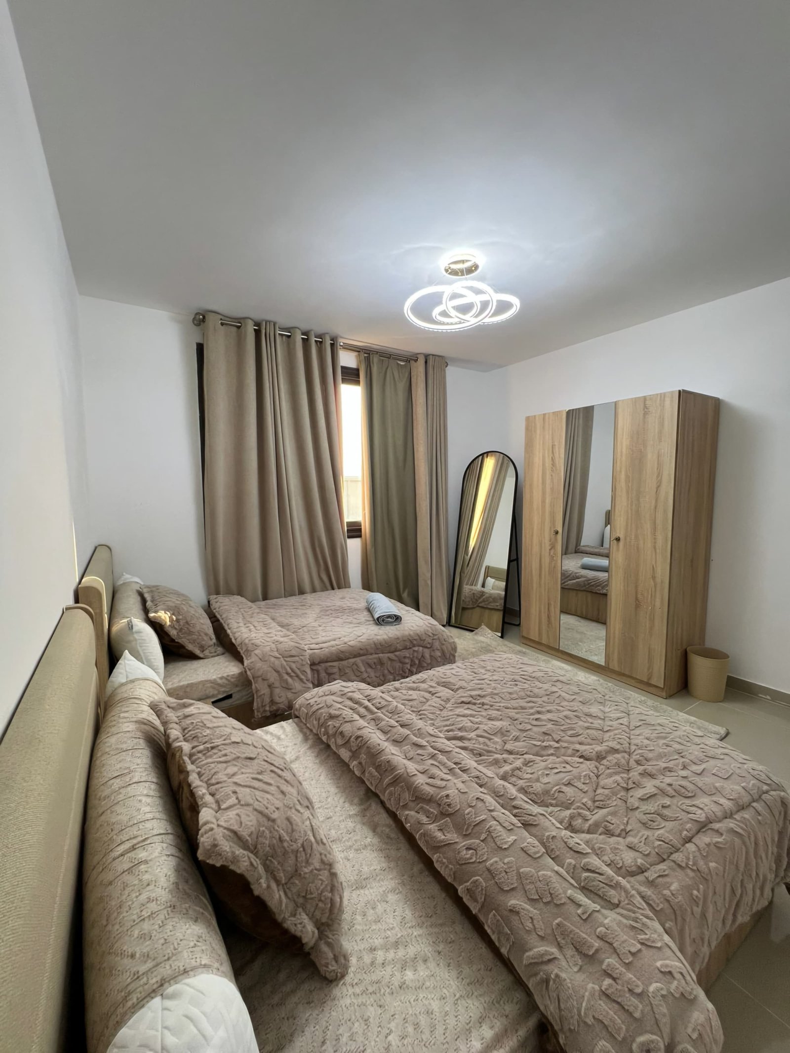 – 2 bedrooms  – sherad pool  – sofa bed  – modern furniture  – Fully equipped kitchen – washing machine  -Refrigerator – Smart TV  – Fully air-conditioned rooms – Linens & Towels provided – Free wi-Fi – Accommodates 6 adults – 5 Minutes from centre**