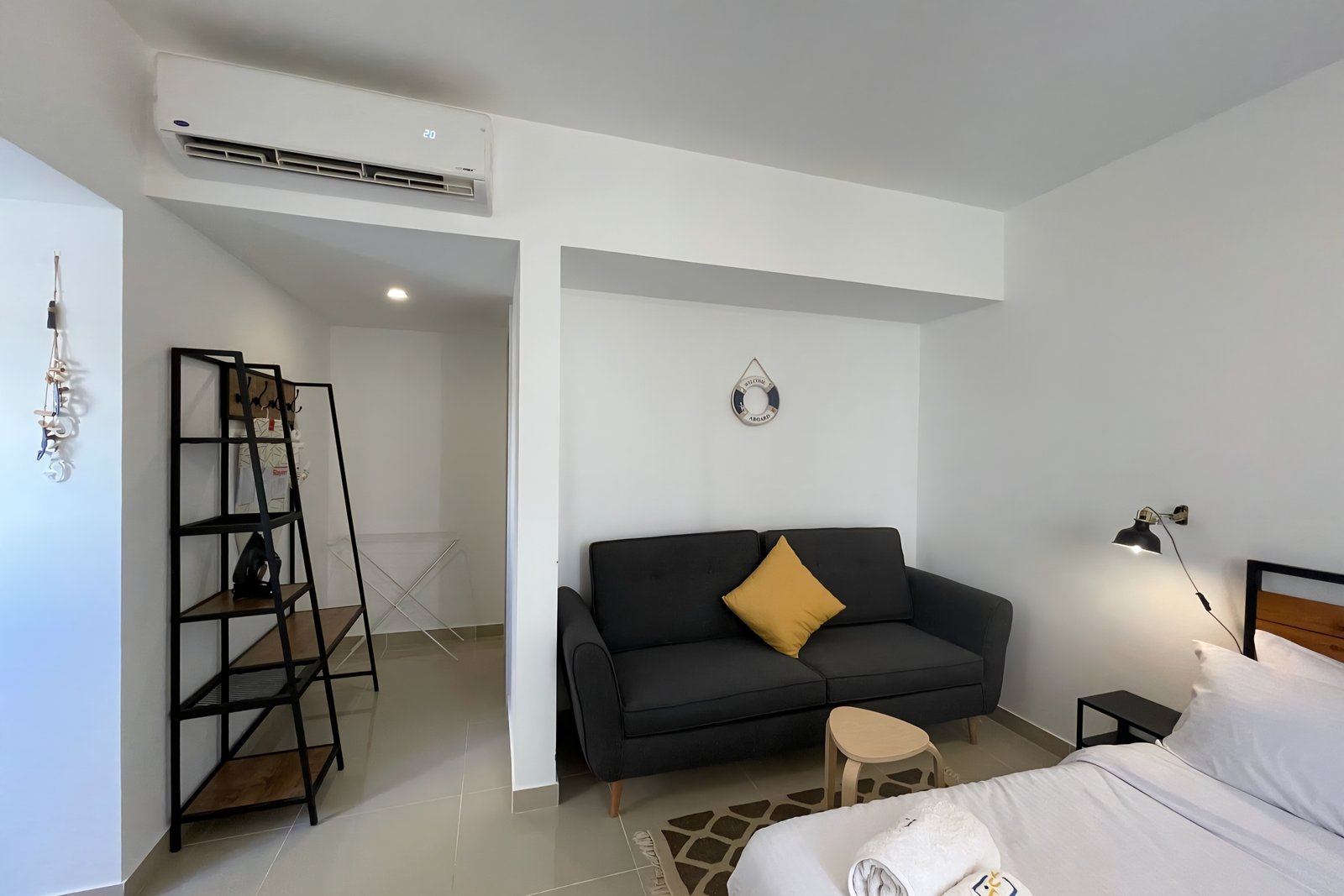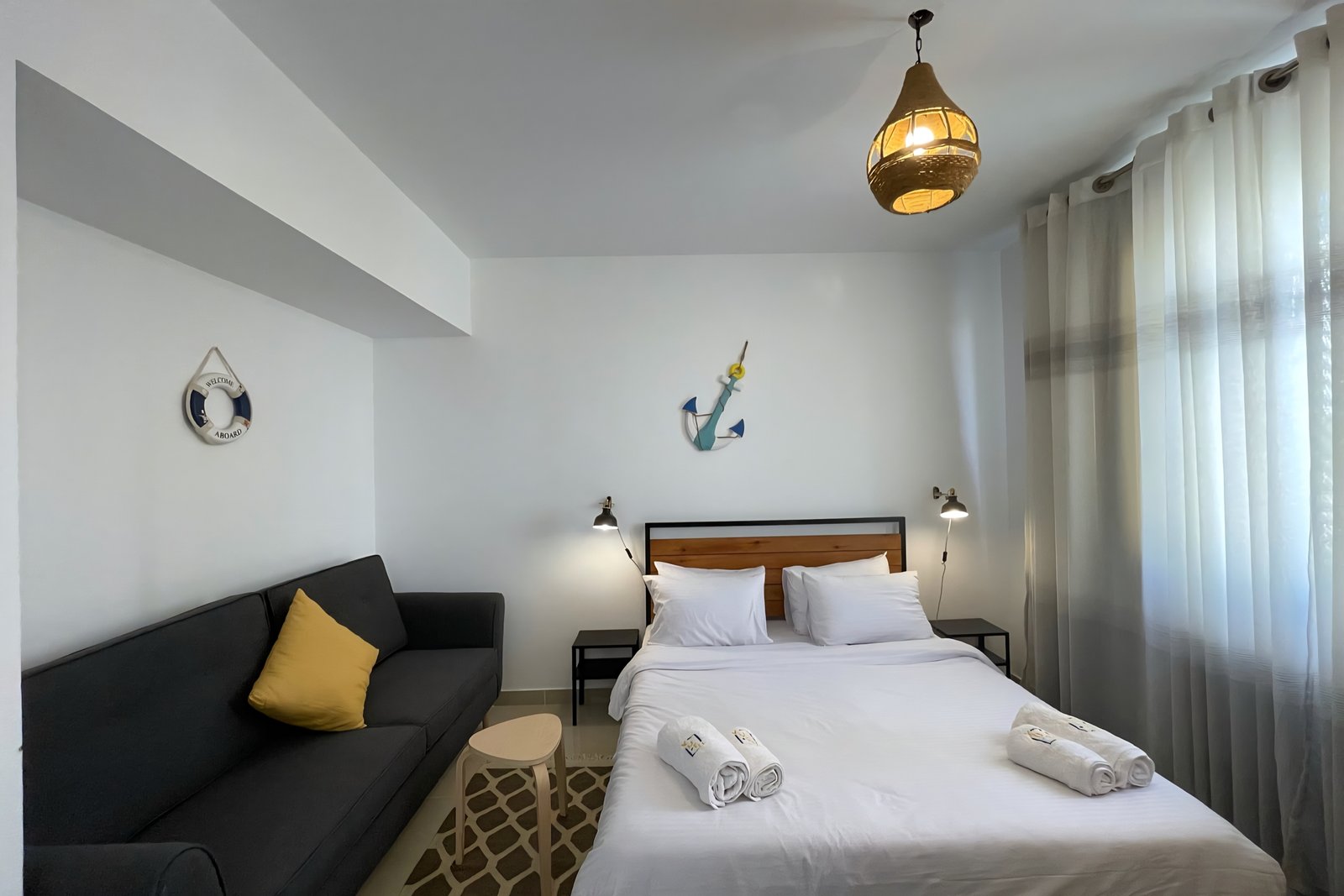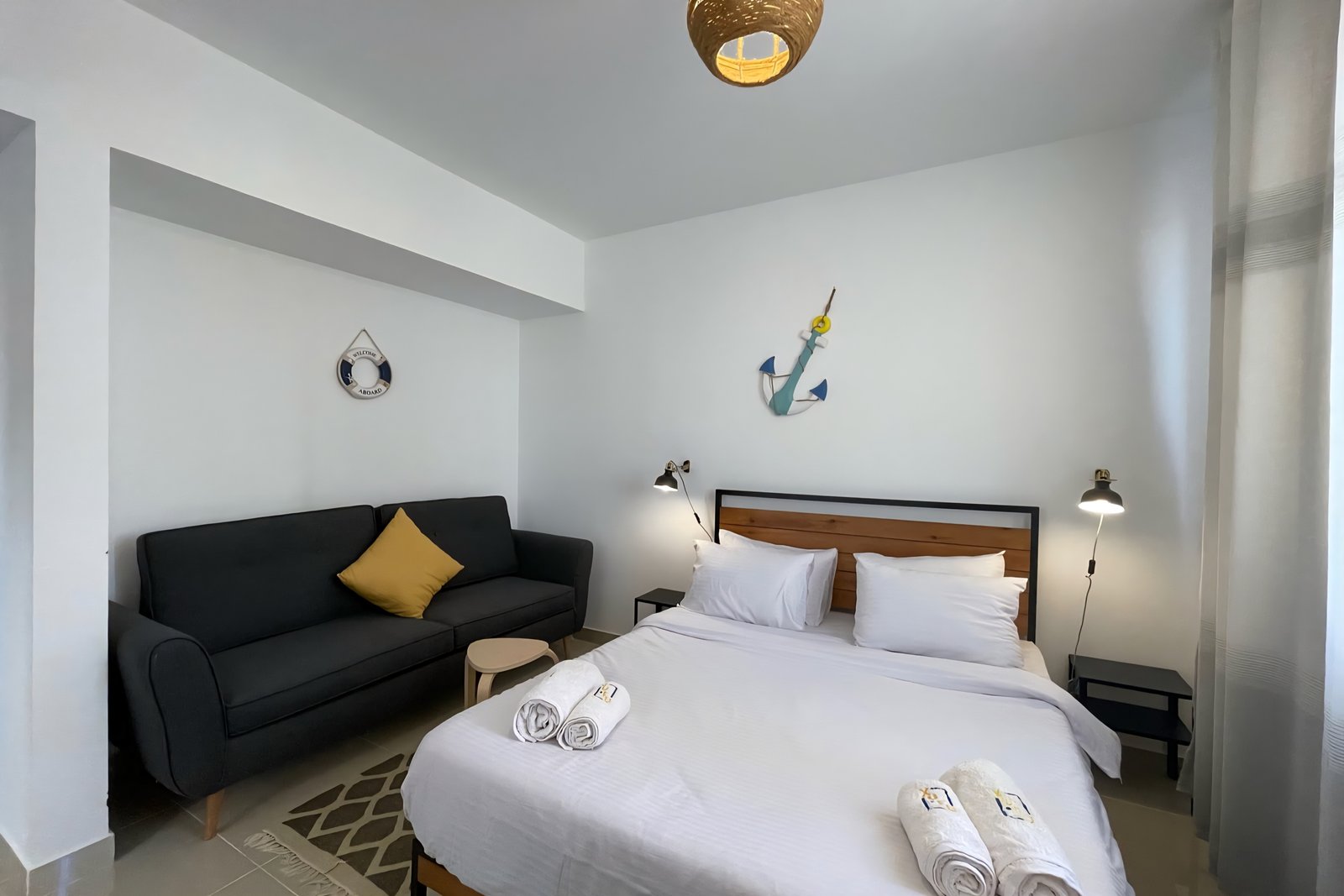 This cozy 1 bedroom studio is located in G-cribs with free pool access. The 1 bedroom studio comes with an open plan fully equipped kitchen, 1 full bathroom. It also features a 65 inch smart TV with Airplay and cable channels, a Nespresso machine, kettle and a microwave. The styling is made with a modish and calming taste to ensure guests have a wonderful and relaxing experience. Neighborhood: G Cribs is the comfort zone for those who want to discover more. Each unit receives full access to all facilities and services G Cribs provides. Transit: Free outdoor parking is available. Tuktuks are available to take you anywhere in El Gouna.