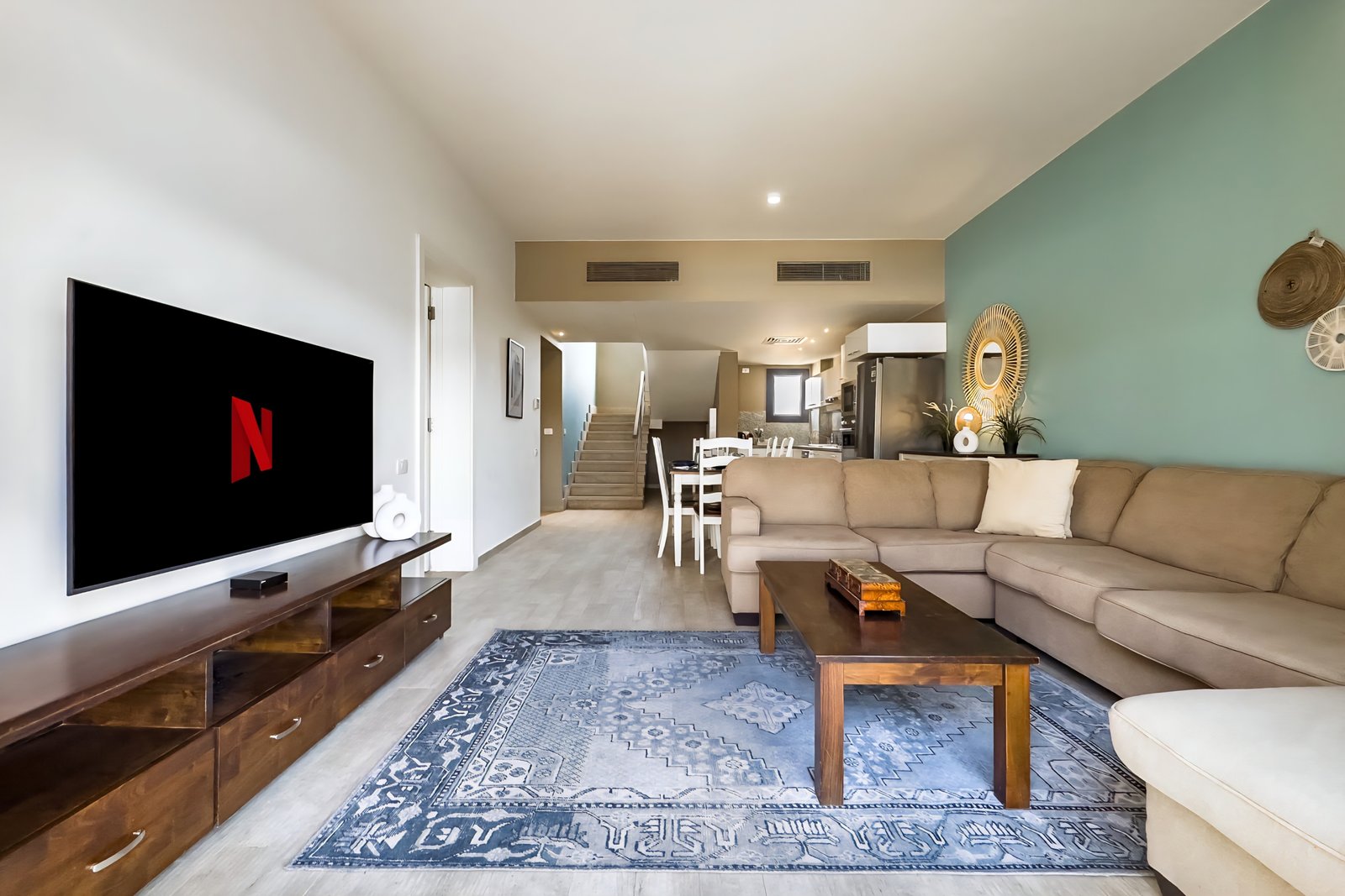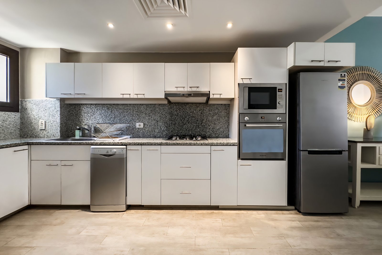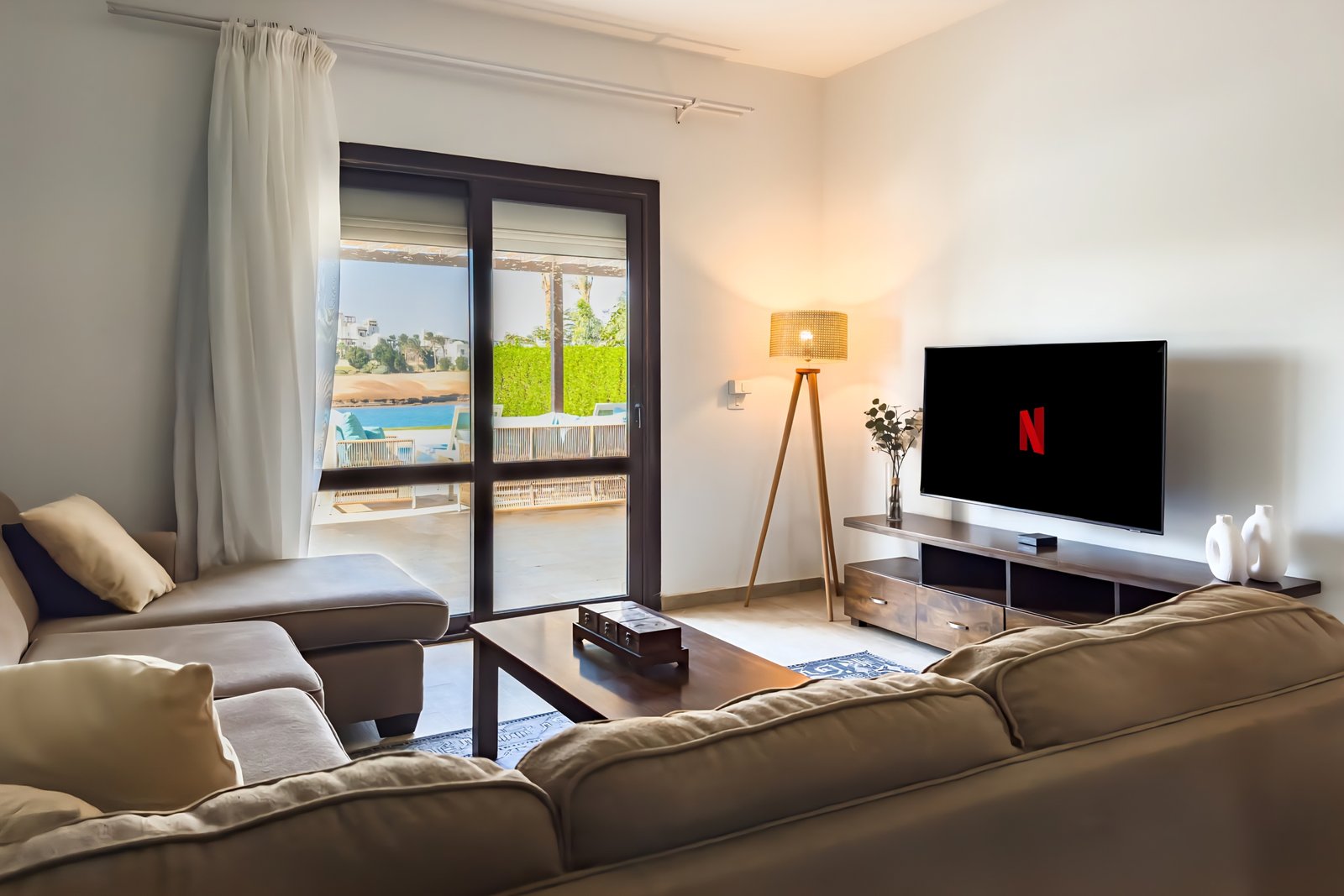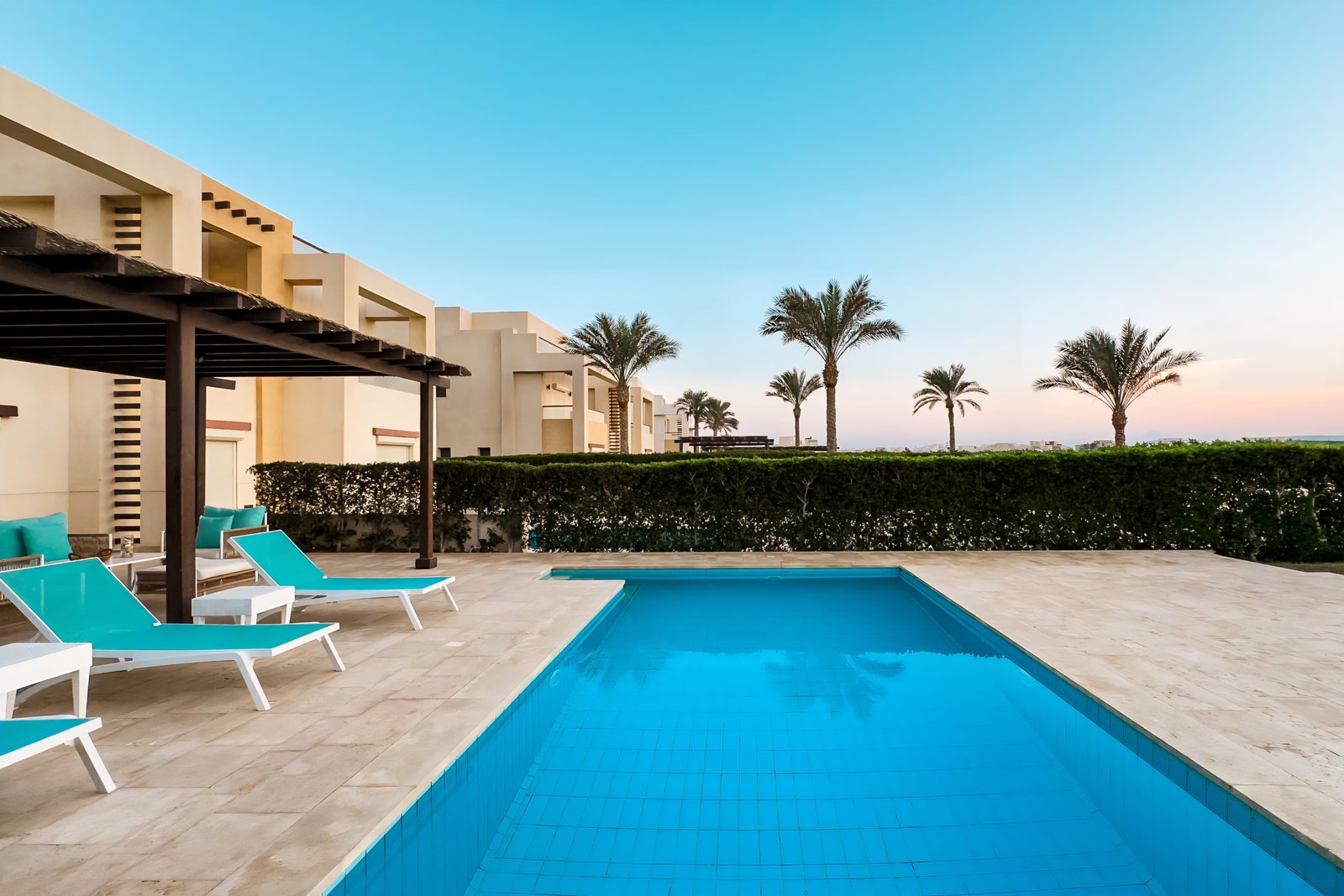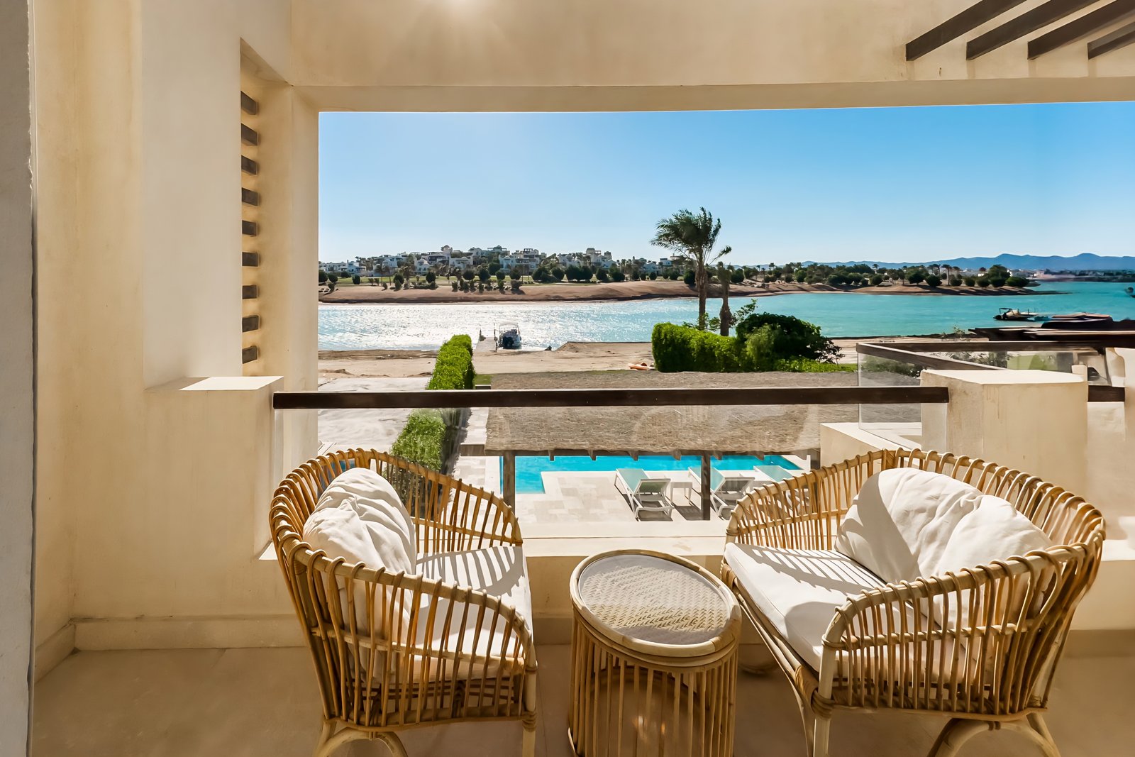 This lagoon front 4 bedroom villa is located in Gouna’s beloved Joubal community and features a private pool along with a guest / maid’s bedroom. The ground level features an open plan fully equipped kitchen, maid’s room, dining area and a living room. It also features a 65 inch smart TV with Airplay and cable channels, washing machine, a Nespresso machine, kettle and a microwave. The first level features 4 separate beautifully decorated bedrooms with king size beds. Additionally there are a total of 4 full bathrooms. The styling of the villa is tailored to give the guests a relaxing and a unique vibe. Neighborhood: -Joubal is a center point from Abu Tig Marina. – Joubal Lagoon located 35 minutes away from Hurghada international airport. Transit: Free outdoor parking is available. Tuktuks are available to take you anywhere in El Gouna