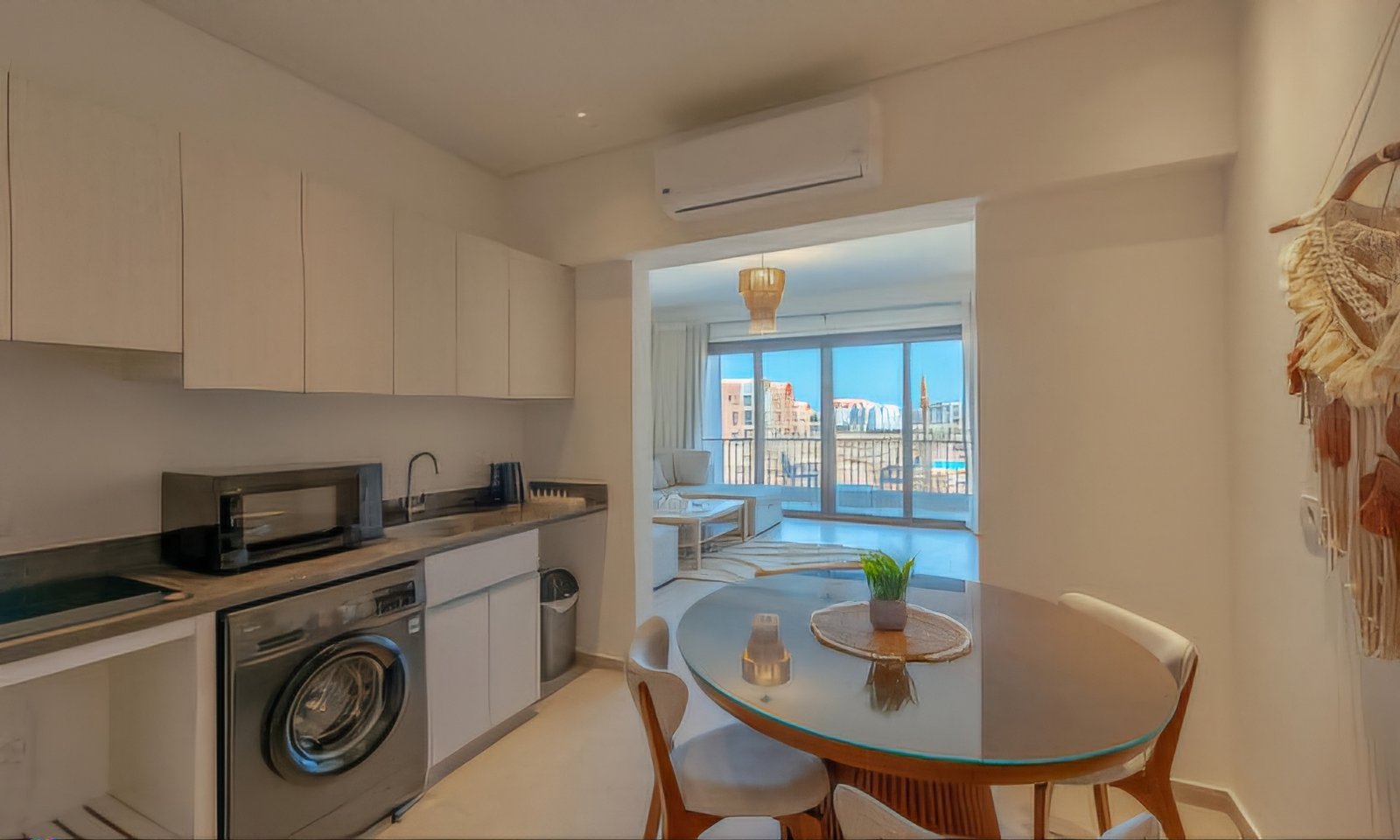 Brand-New 1BR Apartment in Kamaran El Gouna | Pool View & Access Experience modern comfort in this brand-new 1-bedroom apartment located at 1st floor in Kamaran, El Gouna. With a stunning pool view and access, this stylish retreat offers the perfect blend of relaxation and convenience. Apartment Features: Comfy bedroom with a cozy queen-size bed Bright living area with a cozy sofa corner & smart TV Fully equipped kitchen with modern appliances Elegant bathroom with a walk-in shower Private balcony overlooking the pool High-speed Wi-Fi & air conditioning for ultimate comfort Guest Access & Location: Pool access just steps away Minutes drive from Marina, Downtown & beaches Close to restaurants, shops & nightlife