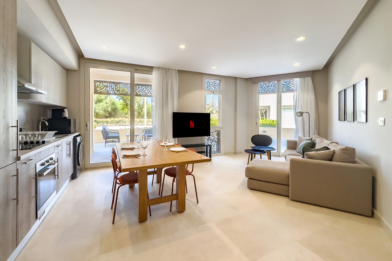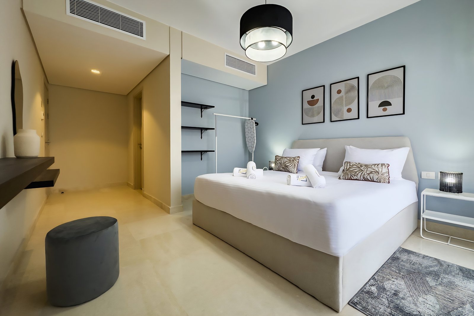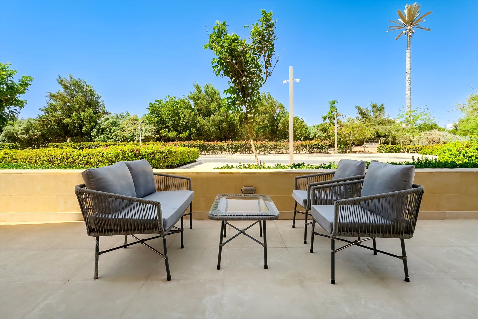 This spacious 1 bedroom apartment is located in Gouna’s only beachfront residence – Mangroovy with free pool and beach access. Mangroovy is closest to the Marina (10 min walk). The apartment is on the ground floor and features an open plan fully equipped kitchen, 2 bathrooms and a living room. There is a bright and cozy outdoor furnished patio, perfect for your morning coffee or late night relaxation. It also features a 55 inch smart TV with Airplay and cable channels, washing machine, a Nespresso machine, kettle and a microwave. The apartment is great for couples & small families. The styling of the apartment is tailored to give the guests a relaxing vibe. Neighborhood: -Mangroovy residence is uniquely located 800 meters from Marina El Gouna. Guests will be able to walk 10 minutes and get to it. -‘Bright Star’ supermarket is right in front of the residence towards the Marina. -Mangroovy is home to the famous ‘Noi’ beach lounge (located at Mangroovy’s beach) – ‘The Smokery’, a local favorite is also located 450 meters from the residence.