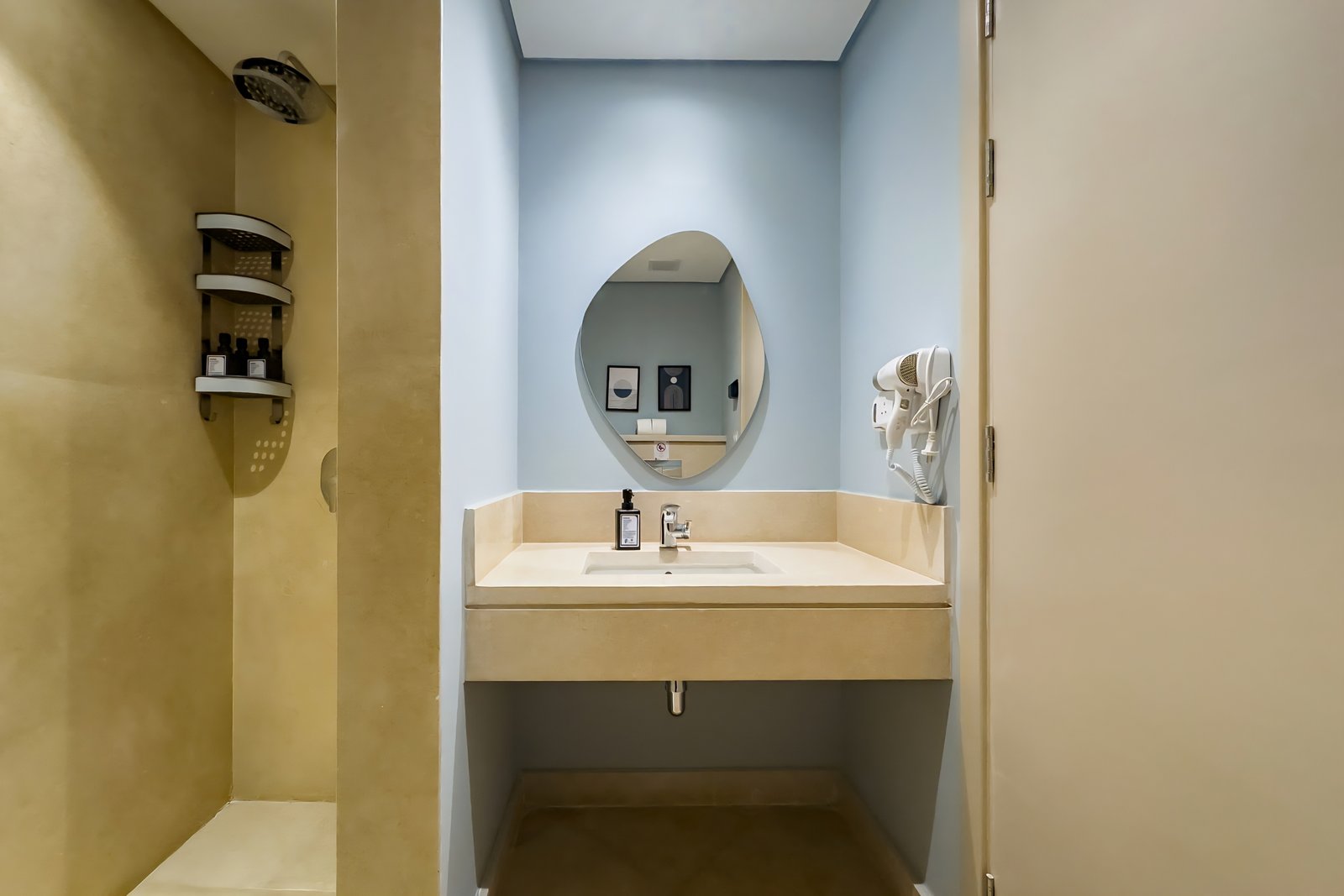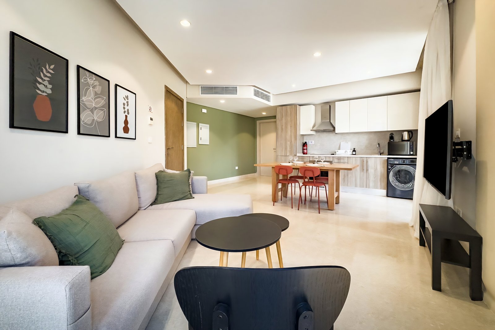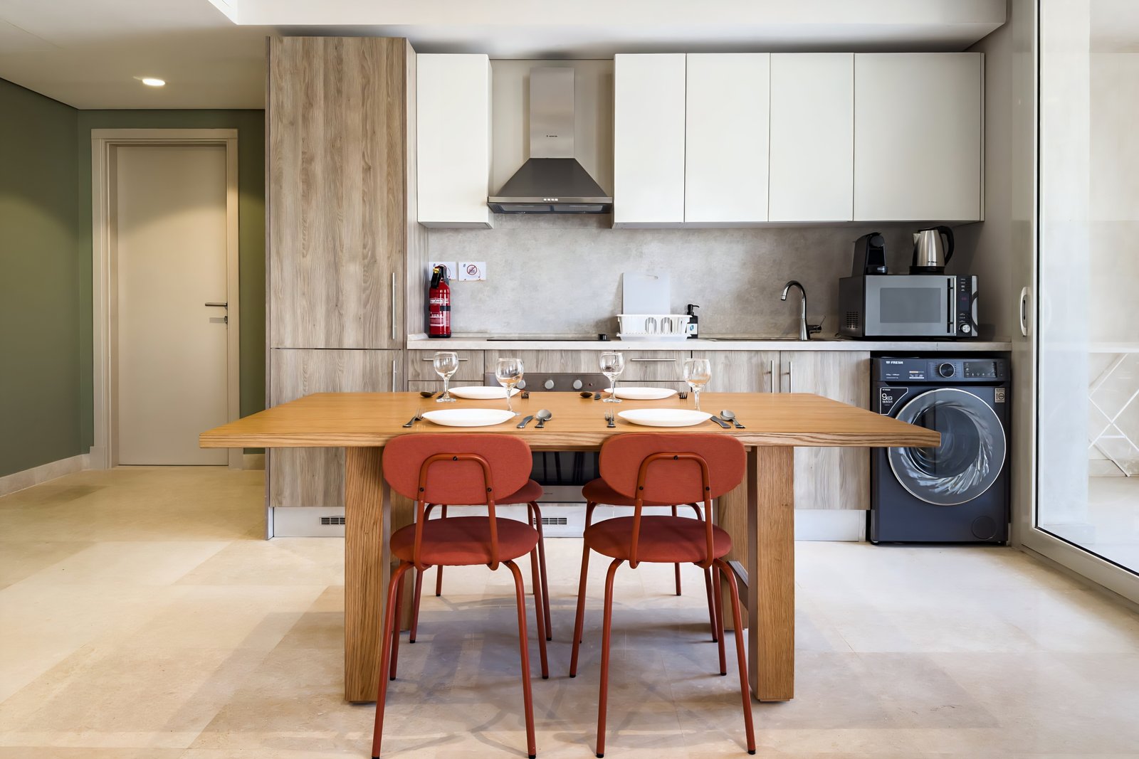 This spacious 1 bedroom apartment is located in Gouna’s only beachfront residence – Mangroovy with free pool and beach access. Mangroovy is closest to the Marina (10 min walk). The apartment is on the ground floor and features an open plan fully equipped kitchen, 2 bathrooms and a living room. There is a bright and cozy outdoor furnished patio, perfect for your morning coffee or late night relaxation. It also features a 55 inch smart TV with Airplay and cable channels, washing machine, a Nespresso machine, kettle and a microwave. The apartment is great for couples & small families. The styling of the apartment is tailored to give the guests a relaxing vibe. Neighborhood: -Mangroovy residence is uniquely located 800 meters from Marina El Gouna. Guests will be able to walk 10 minutes and get to it. -‘Bright Star’ supermarket is right in front of the residence towards the Marina. -Mangroovy is home to the famous ‘Noi’ beach lounge (located at Mangroovy’s beach) – ‘The Smokery’, a local favorite is also located 450 meters from the residence.