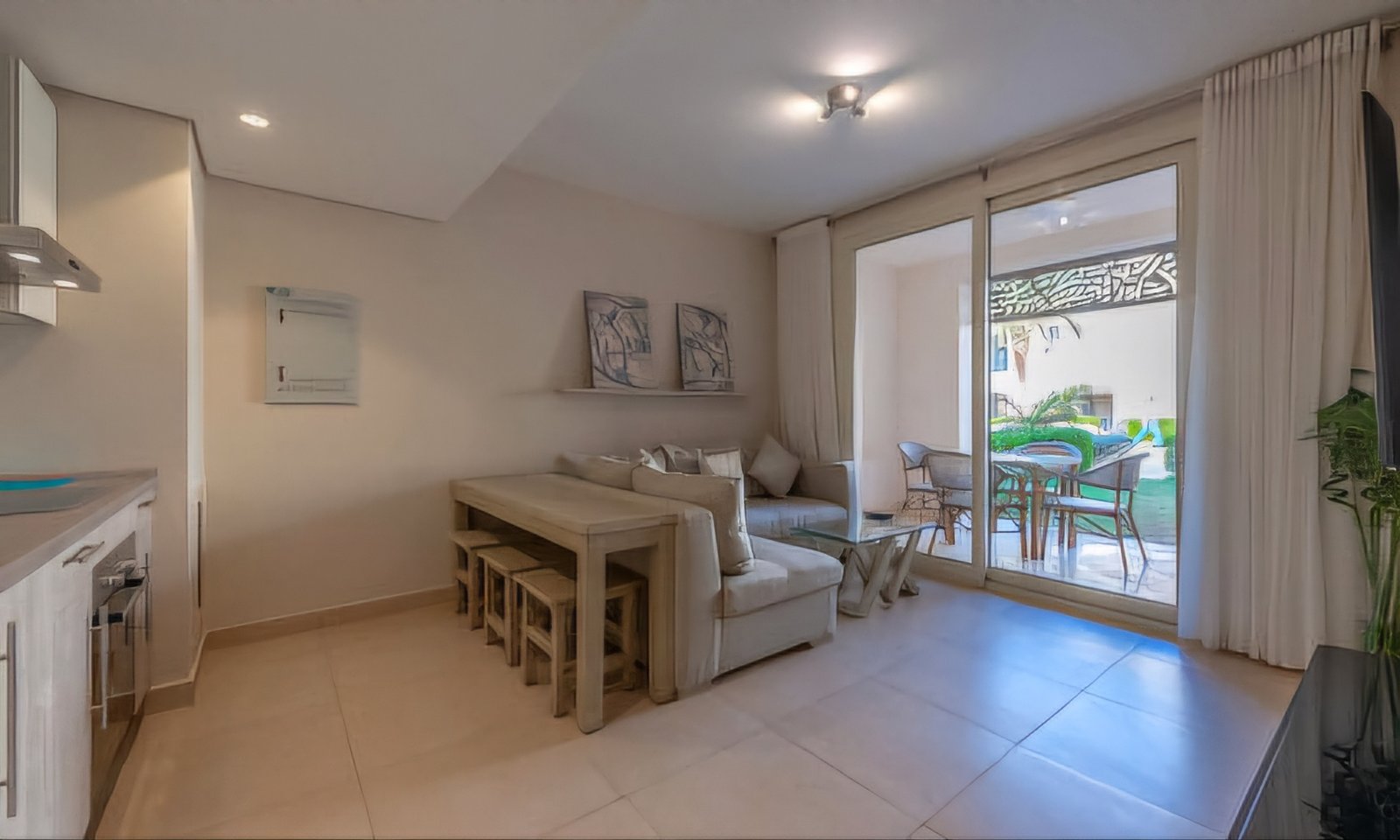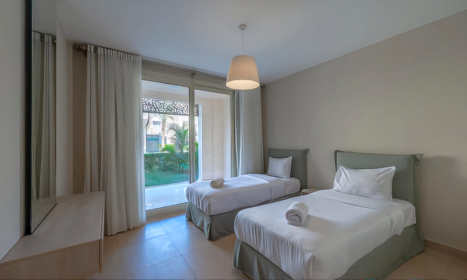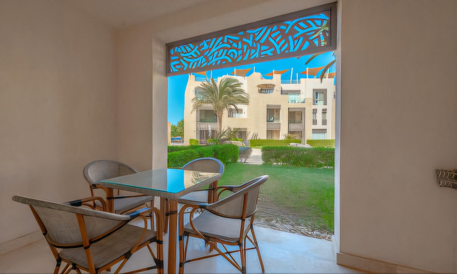 Relax and Recharge in your 1BR oasis Escape to this peaceful ground-floor retreat, ideally situated in a vibrant yet tranquil neighborhood in El Gouna, Mangroovy Residence. Perfect for couples, solo travelers, or small families, this cozy space blends comfort and convenience. What You’ll Love: A private, furnished terrace and lush garden to unwind in serenity Beautiful garden and pool views A spacious master bedroom with two single beds and an en-suite bathroom with a shower A convenient guest toilet Open-plan living room with a cozy seating area / single sofa-bed, Smart TV, and Wi-Fi Fully equipped kitchen with all essential appliances, including a stove, microwave, and kettle Dining space for enjoying meals together Access to a refreshing swimming pool and Mangroovy Beach Dedicated free parking right in front Nearby Attractions: The Red Sea and popular kitesurfing centers Bestway Supermarket Marina – less than 1km away El Gouna’s Downtown – just a 7-minute drive by car or tuc-tuc Whether you’re here to relax by the pool, explore El Gouna’s vibrant spots, or enjoy watersports, this charming home has everything you need for a delightful stay.