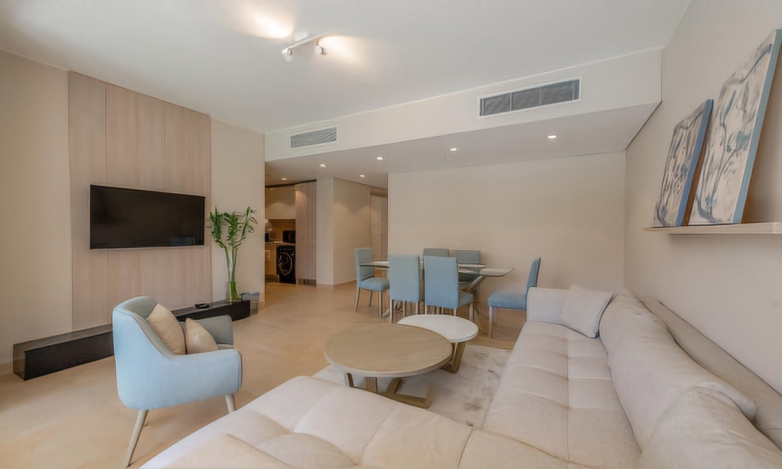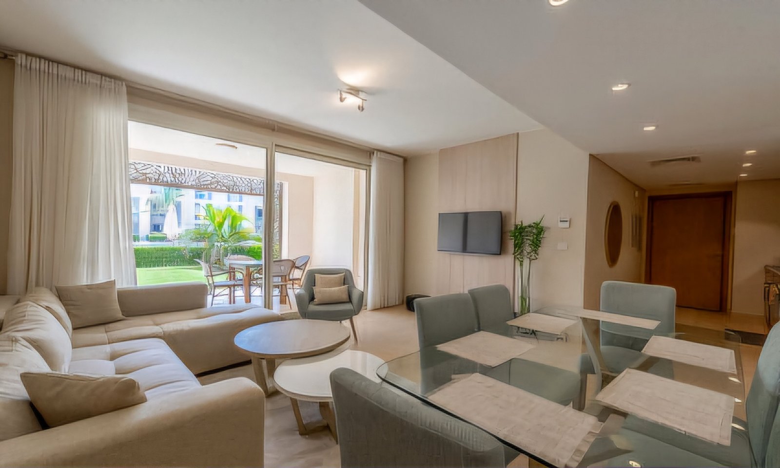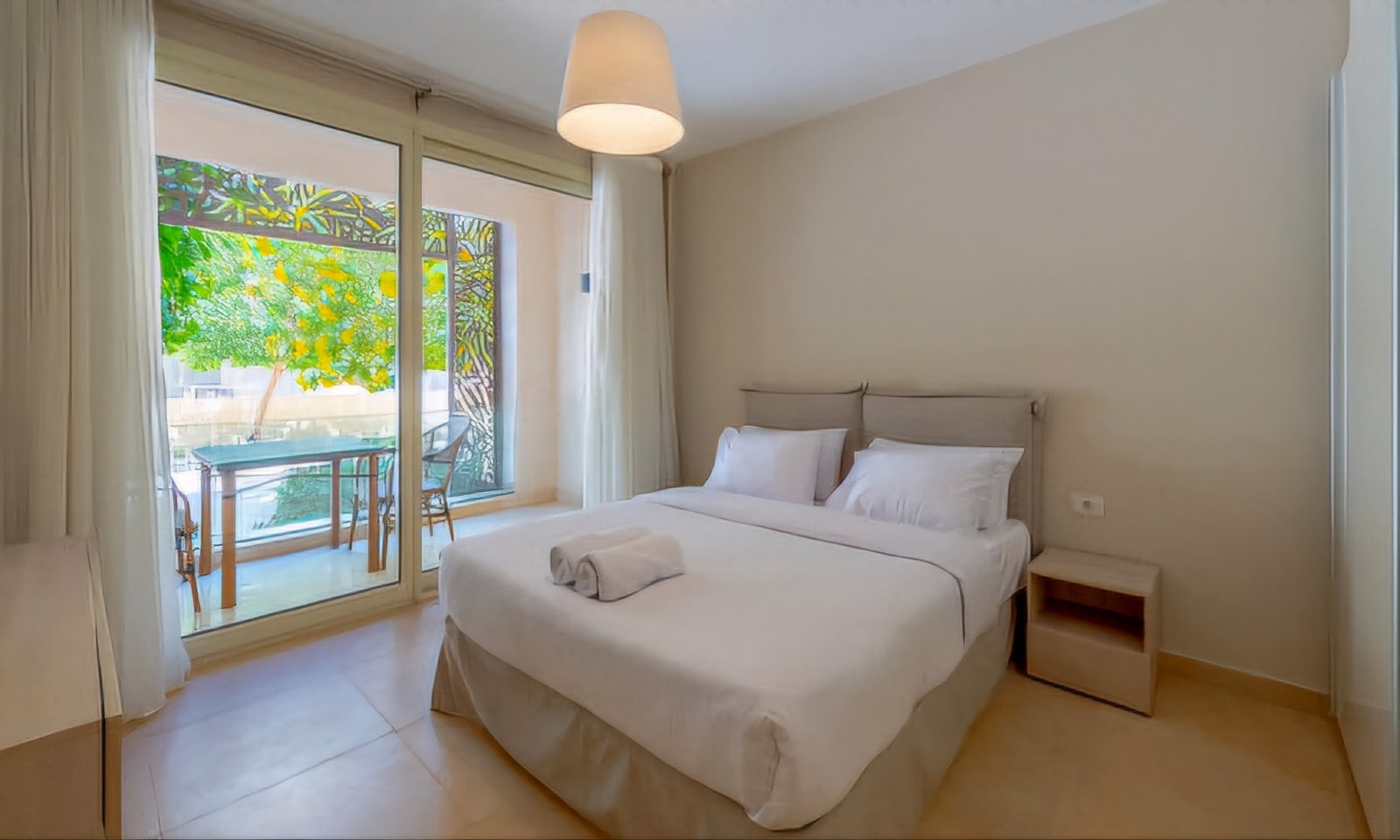 2BR apartment in Mangroovy Residence on the Ground floor. There are two bedrooms, an open living space, kitchen and furnished terrace with small garden and shared swimming pool located just a few steps away all for you to explore. This brand new apartment is fully air-conditioned and equipped, comfortably accomodates up to 4 guests. ▶ Ground floor ▶ Terrace & backyard ▶ 2 Bedrooms (1 x queen size, 2 x single bed) ▶ 2 Bathrooms with shower ▶ Elegant open-plan living room ▶ Seating area by the TV ▶ TV ▶ ACs ▶ Kitchen with necessary utensils and appliances ▶ Large dining table ▶ Outdoor dining space ▶ Washing machine ▶ Pool view ▶ Pool access ▶ Beach access ▶ Free parking