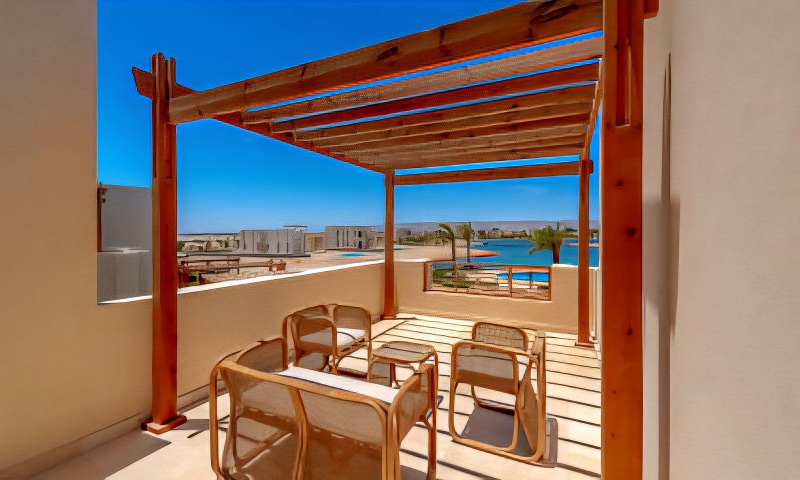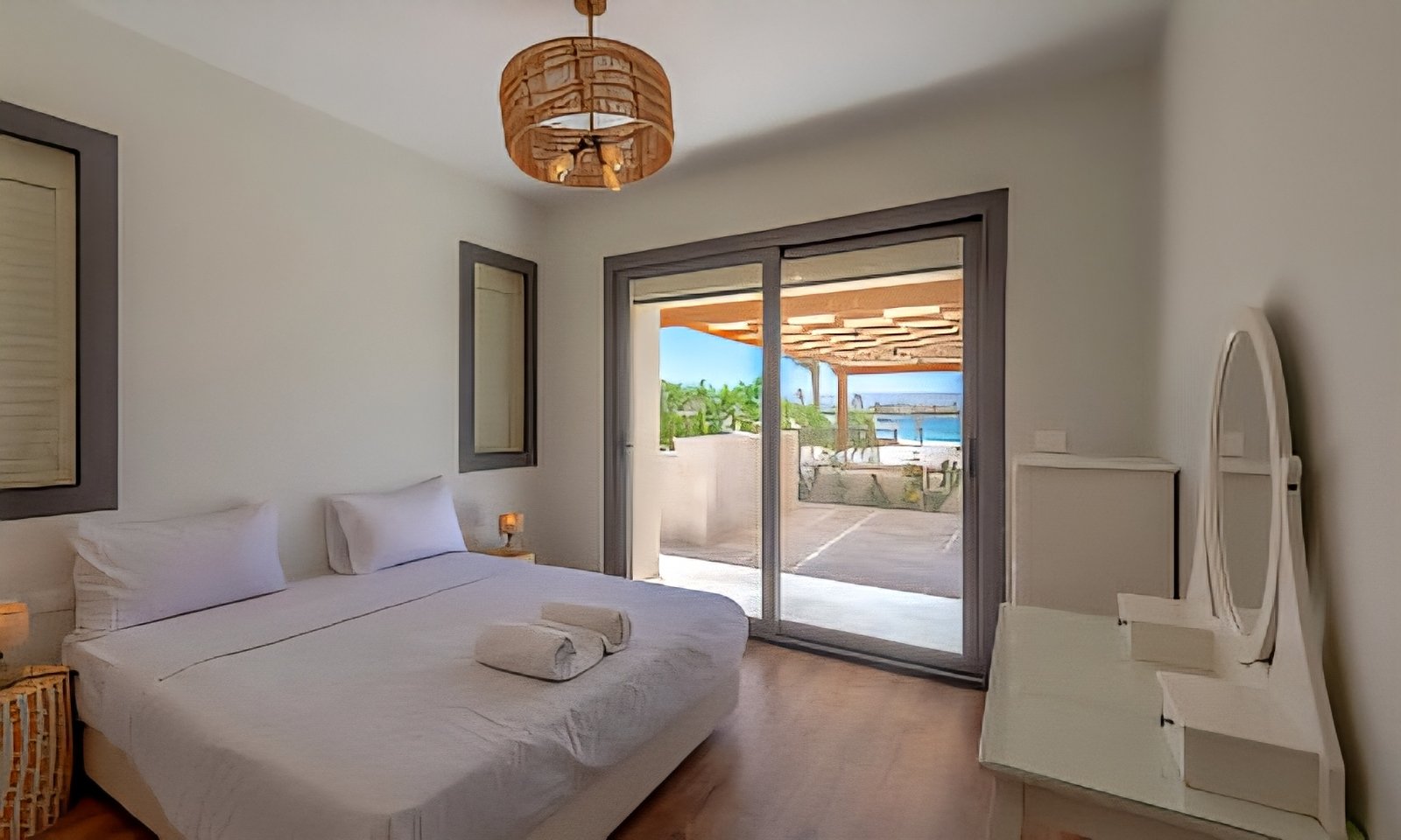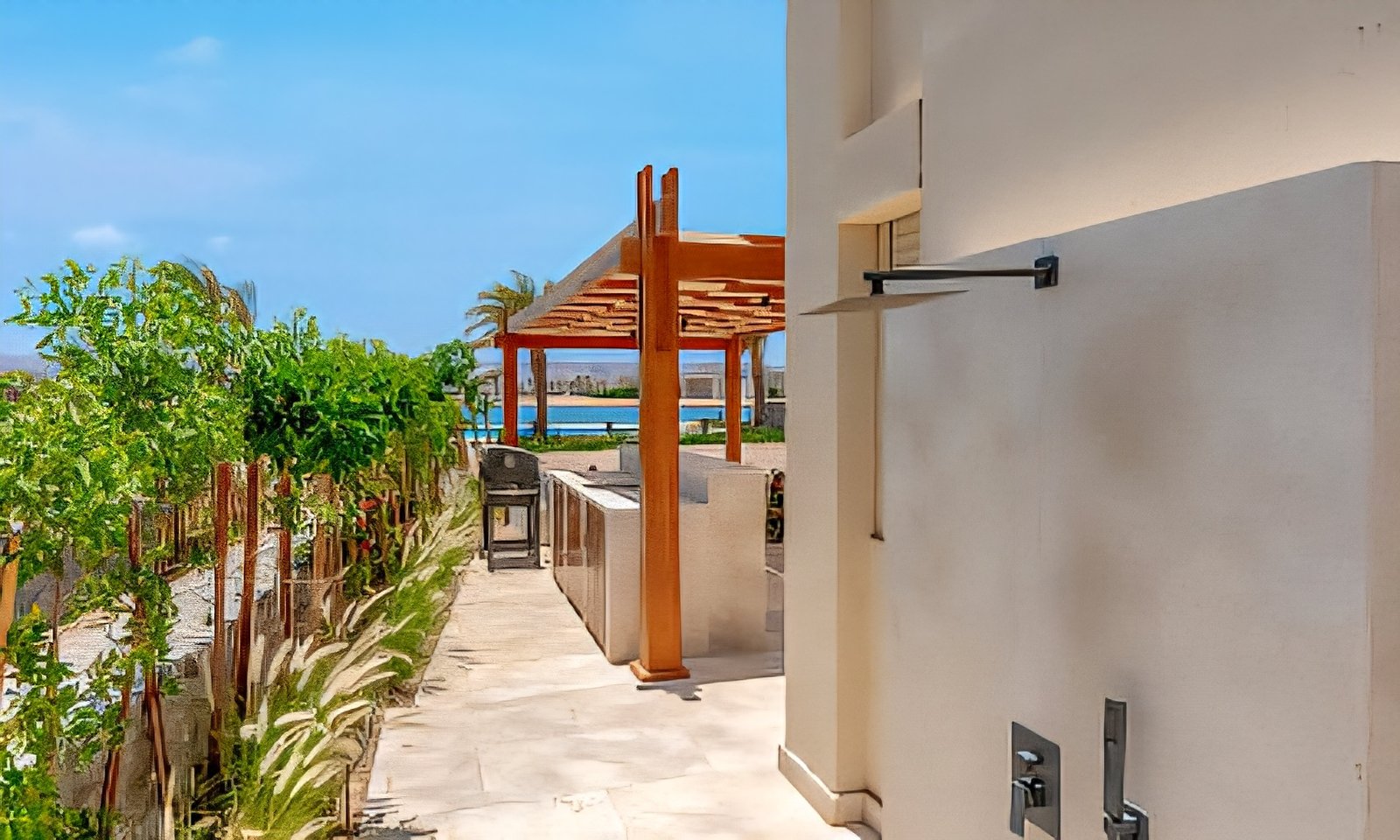 Discover this brand-new two-level, 3-bedroom villa, thoughtfully designed with modern elegance and comfort, offering stunning views and premium amenities. Nestled along the tranquil lagoons of Shedwan, El Gouna, villa provides effortless access to a lagoon and shared swimming pool, right from a private, grass-covered backyard. An ideal choice for families and couples, this home is a perfect mix of luxury with serene natural beauty. ▶ Brand-New House ▶ 2 Levels ▶ Lagoon & Pool-Front, Grass-Covered Backyard ▶ Outdoor Relaxation Zone & BBQ ▶ 3 Bedrooms: ▶ Master Bedroom Ensuite (1st Floor) • Queen-Size Bed • Private Bathroom with Shower • Furnished Upper Terrace with Stunning Views ▶ 2nd Master Bedroom Ensuite (Ground Floor) • Double bed • Private Bathroom with Shower ▶ 3rd Bedroom (Ground Floor) • 2 Single Beds ▶ 3 Bathrooms with Shower ▶ Bright, Open-Concept, High-Ceiling Living Area ▶ Comfortable Seating with Smart TV ▶ Dining Table (6 chairs) ▶ Fully Equipped Kitchen (Fridge & Freezer, Oven, Microwave & More) ▶ Washing Machine & Iron ▶ Air-Conditioned ▶ Wi-Fi Coverage Throughout ▶ Private Entrance ▶ Swimming Pool Access ▶ Swimmable Lagoon Access ▶ Spacious, Shaded Private Parking Every detail of this home is designed for comfort and style, making it a standout retreat in El Gouna.