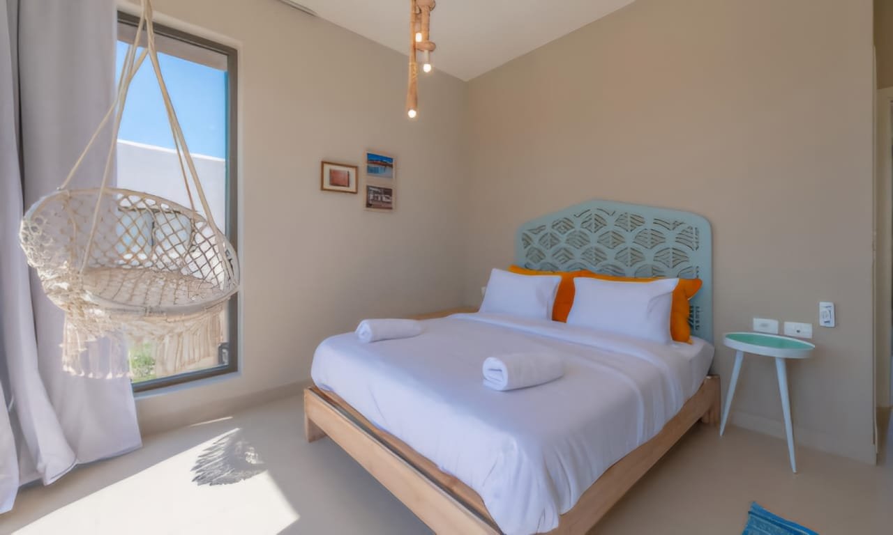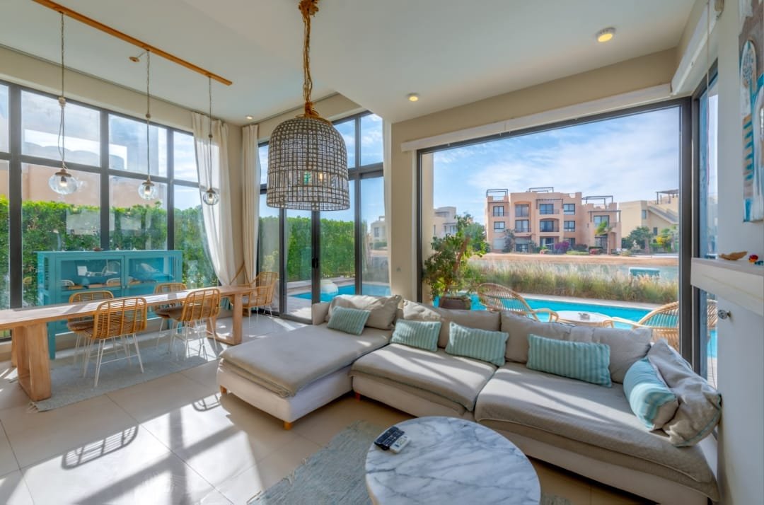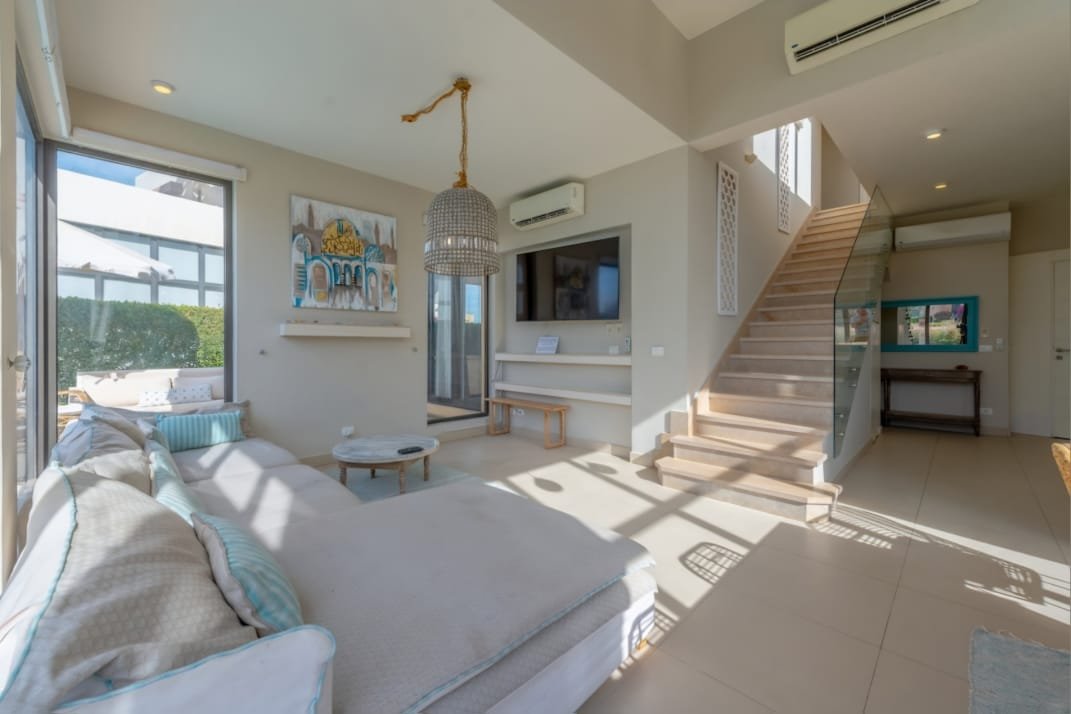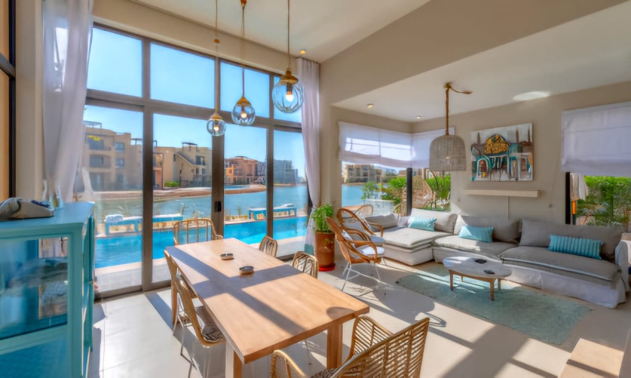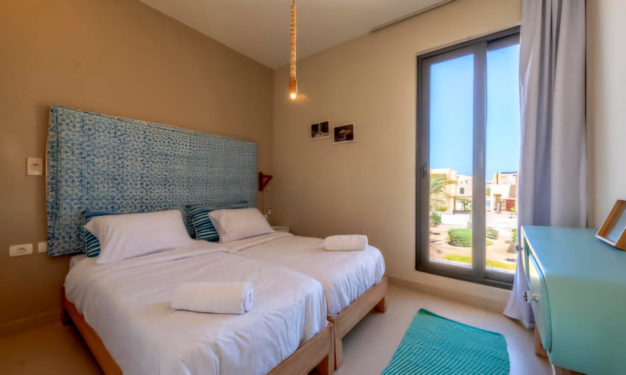 This ultra modern villa in Tawila offers 4 bedrooms, private heated pool, and breathtaking lagoon views. Every detail was carefully thought of to create the perfect vibes for an unmatched beach house. La Casa de Playa offers unrivaled amenities to ensure guests will enjoy a memorable stay: – An above standard private swimming pool (10m x 4m) with brand new heater, – Outdoor bar and entertaining area ideal for a gathering over a meal or drinks. The area is equipped with a high end grill, hob, and a mini-bar, – A landscaping designed by an international architect including a wooden deck leveled to the interiors with palm trees and modern lighting system to create the perfect sunset scenery, – The interior is designed and inspired to create an unforgettable stay. It comes with locally handcrafted pieces (vitrines, banquettes, chaises longues…) and modern art work from young and talented Egyptian artists, – Rooftop terrace with fancy lounge offering marvelous lagoon views, – Kitchen fully equipped with high end electrical appliances, – 4 Bedrooms, 3 bathrooms + extra guest room with bathroom – Capable to accommodate up to 8 guests