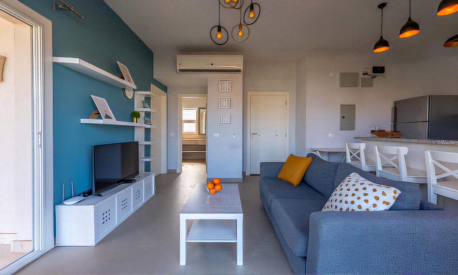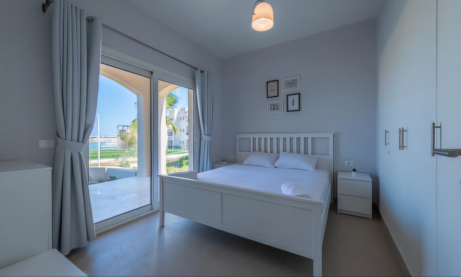 This beautifully designed 1-Bedroom apartment is located in a recently built compound Waterside inside El Gouna, very attractive in location and view. The terrace, bedroom and living room all share a breathtaking view, overlooking the lagoon, pool and Sliders Cable Park (Wake Park). The large shared Infinity pool is right in front of the apartment. There is a master bedroom (with a comfy queen-sized bed) and full bathroom with shower. A cozy open-space living room with a 43″ flat screen TV & a dining table is directly connected to the terrace with garden and marvelous view. Sofa easily converts into a single bed for 2. Kitchen is equipped, so you can prepare meals on the spot. The kitchen is fully equipped with brand new appliances: microwave, stove, kettle, fridge, freezer, kitchenware and all necessary cooking tools. The apartment is a perfect choice for a couples or solo travelers. Wi-Fi covers all of the property. Ideally situated, just 5-6 minutes drive away from Downtown and Marina Abu Tig, right next to Sliders Water Sports Park featuring Wake Park, Floating Aqua Park, Restaurant, Lagoon Beach, Bar, Kids playground, table tennis and Swimming Pool. Our guests are able to access the entire apartment plus a shared pool just in front of the apartment and free parking on premises. To make you feel at home, we provide fresh clean towels, bed linens and essential toiletries.
